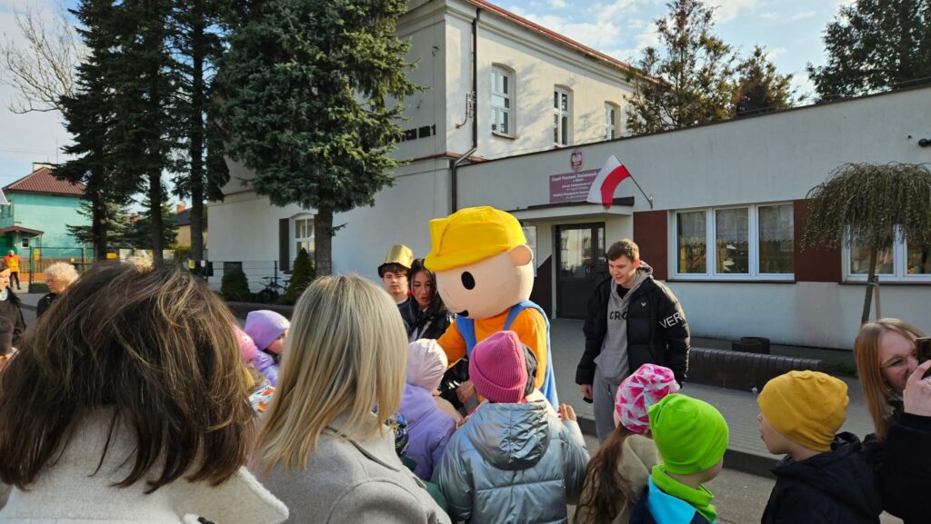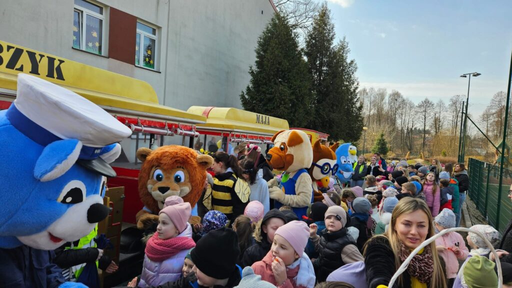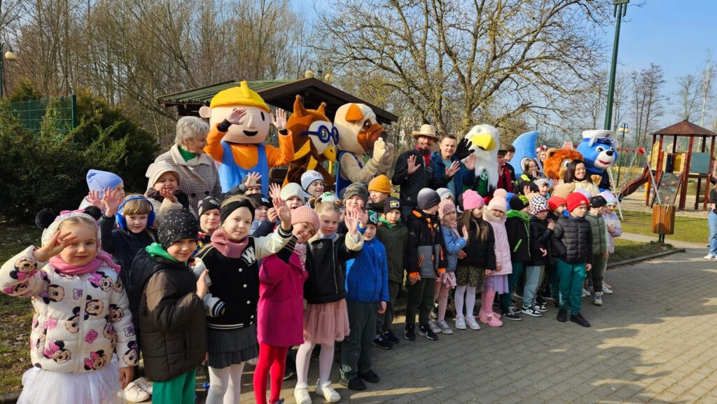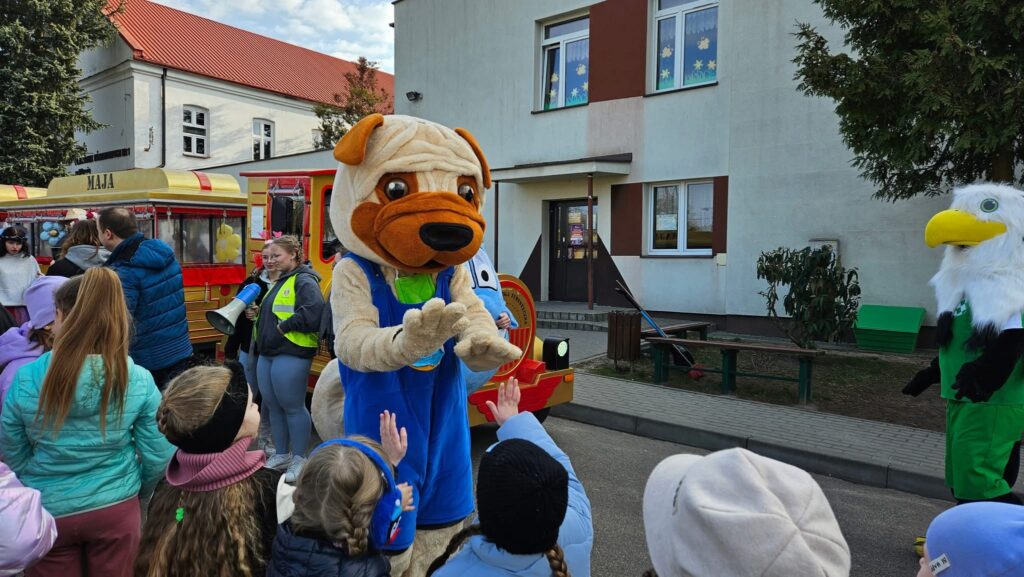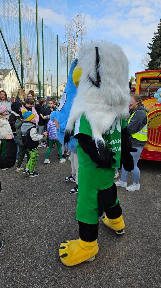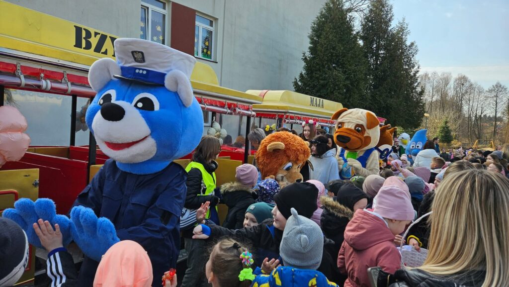 Kolorowa kolejka, odwiedziła szkoły i przedszkola, by spotkać najmłodszych mieszkańców. Dzieci z ogromnym entuzjazmem witały wiosennych gości – sympatyczne maskotki, które chętnie rozdawały uściski i przybijały piątki.