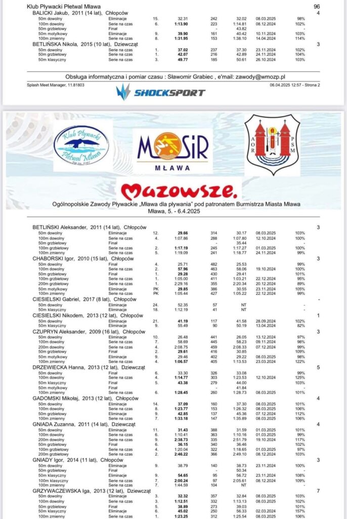 - Ogólnopolskie Zawody Pływackie w Mławie – 500 zawodników, rekordy i niezapomniane emocje!