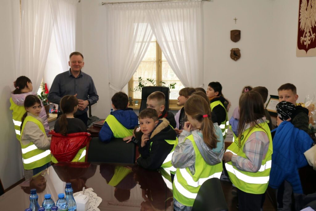 Burmistrz z uśmiechem przyjął swoich młodych gości i z zaangażowaniem opowiadał im o pracy w urzędzie – zarówno swojej, jak i miejskich radnych oraz urzędników. Dla wielu uczniów była to pierwsza okazja, by „od kuchni” zobaczyć, jak funkcjonuje miejski samorząd. Spotkanie miało też wyjątkowy charakter – burmistrz Jankowski podzielił się z dziećmi osobistą refleksją, zdradzając, że sam jest absolwentem ich szkoły, co wywołało żywe zainteresowanie i uśmiechy wśród uczniów.