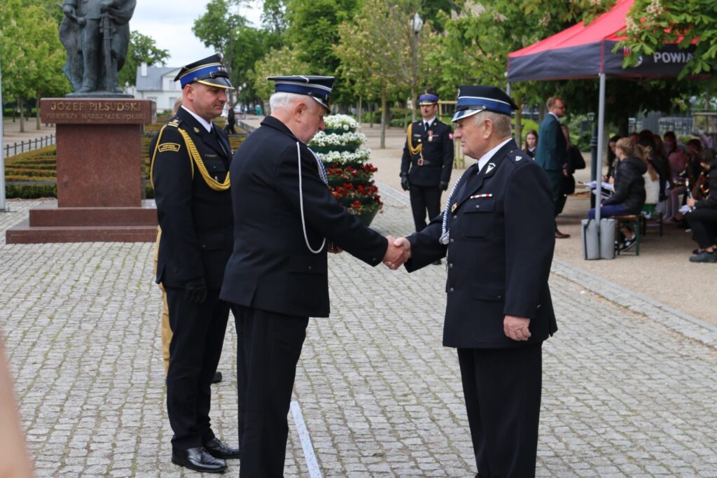 Zwieńczeniem uroczystości było złożenie wiązanek kwiatów pod pomnikiem Marszałka Józefa Piłsudskiego – symbolicznym gestem, który przypomniał o wartościach, jakimi kierują się strażacy: honorze, odwadze i służbie drugiemu człowiekowi.