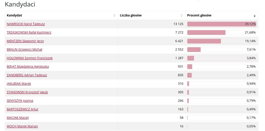 - Sławomir Mentzen – 256 głosów (19,63%)