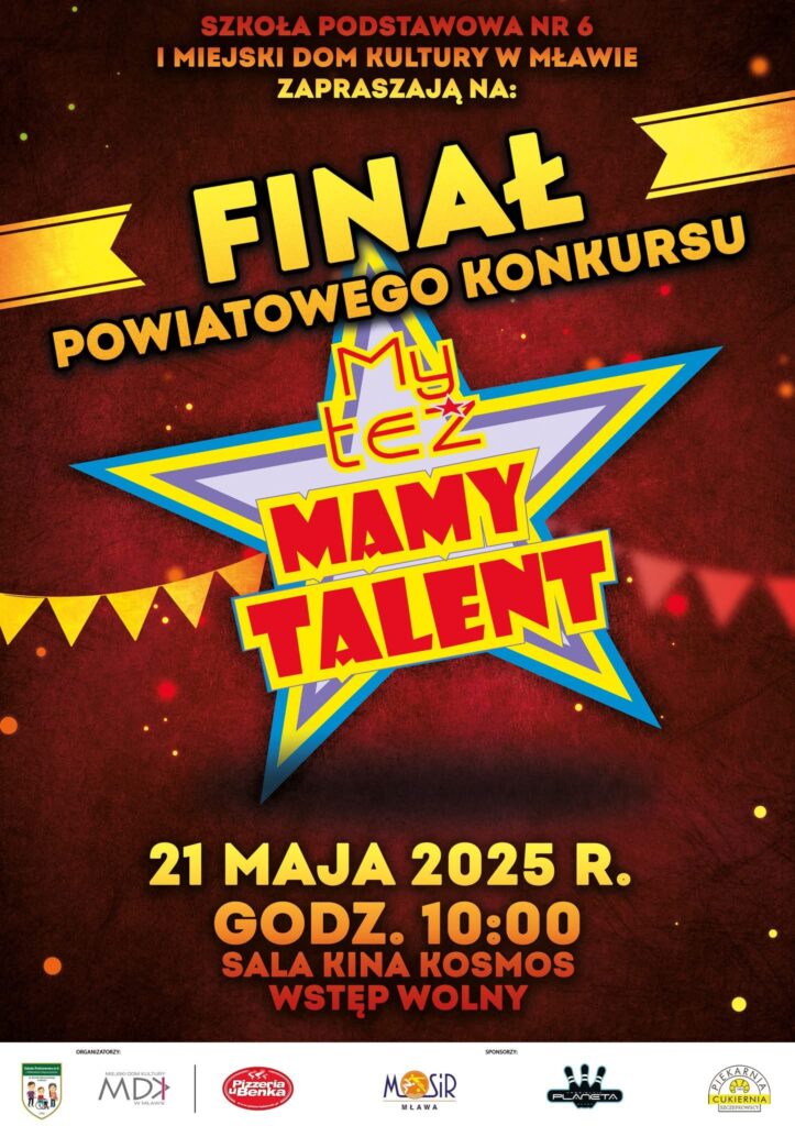 Już dziś, 21 maja o godzinie 10:00 w sali Kina Kosmos w Mławie odbędzie się długo wyczekiwany Finał Powiatowego Konkursu „MY TEŻ MAMY TALENT” – wydarzenie, które co roku gromadzi młodych, utalentowanych uczniów z całego powiatu mławskiego. Przed nami niezwykły dzień pełen artystycznych emocji, kreatywności i niepowtarzalnych występów!