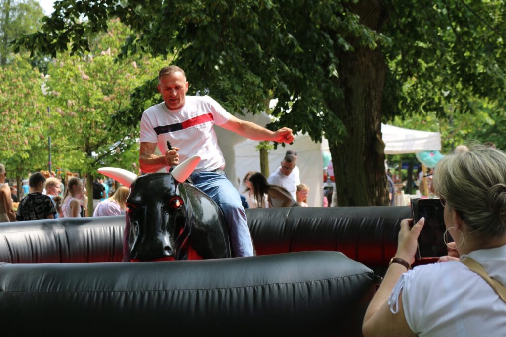 Podczas gdy na estradzie trwały występy, cały park zamienił się w wielką strefę rozrywki. Trampoliny, zjeżdżalnie, dmuchane zamki i popularna atrakcja – mechaniczny byk do ujeżdżania – cieszyły się niesłabnącym zainteresowaniem. Dzieci próbowały swoich sił w mini rozgrywkach piłkarskich, malowaniu twarzy, zabawie w Indian i wielu innych aktywnościach.