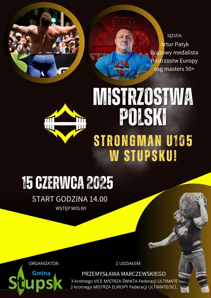 Stupsk już wkrótce stanie się areną jednego z najbardziej emocjonujących wydarzeń sportowych! W niedzielę, 15 czerwca 2025 r. o godz. 14:00, odbędą się Mistrzostwa Polski Strongman U105 – zawody, które przyciągną zarówno miłośników sportów siłowych, jak i całe rodziny spragnione niezapomnianych wrażeń.