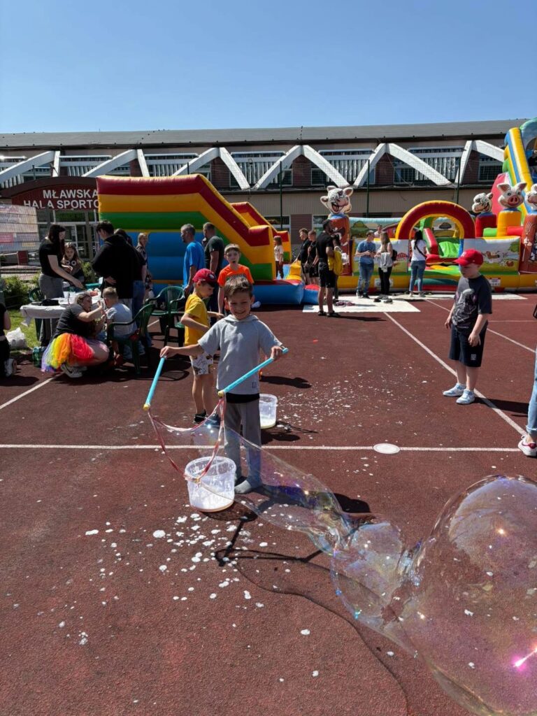 Dla najmłodszych przygotowano ulubione atrakcje – dmuchańce, które niemal nie miały chwili wytchnienia! Nie zabrakło również konkurencji sportowych, w których każdy – niezależnie od wieku – mógł sprawdzić swoje umiejętności.