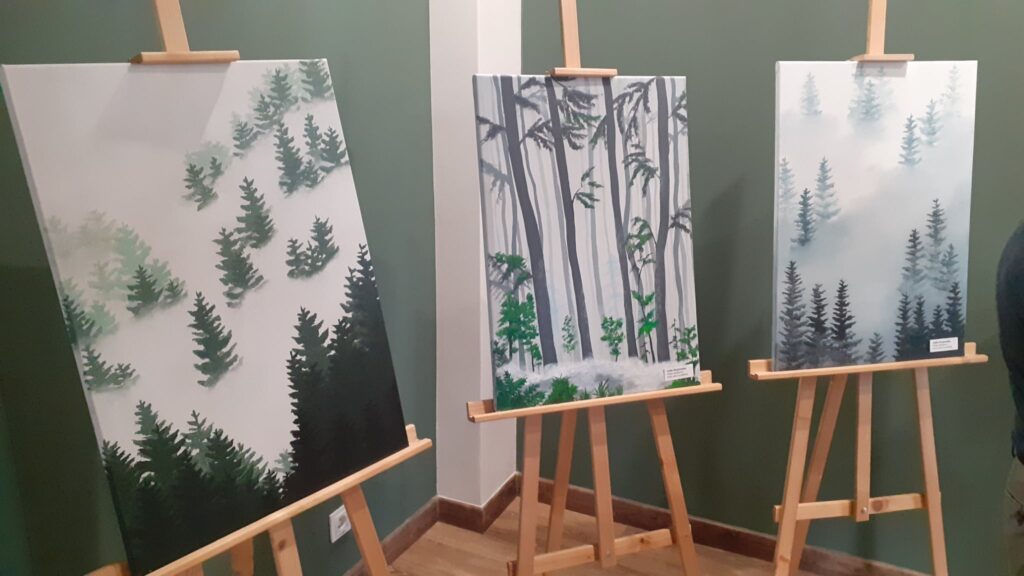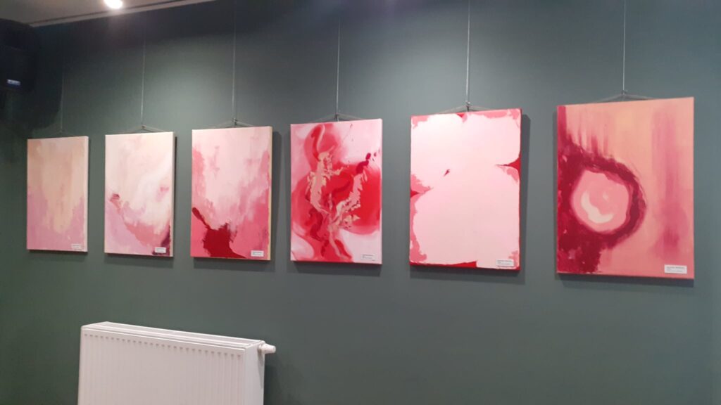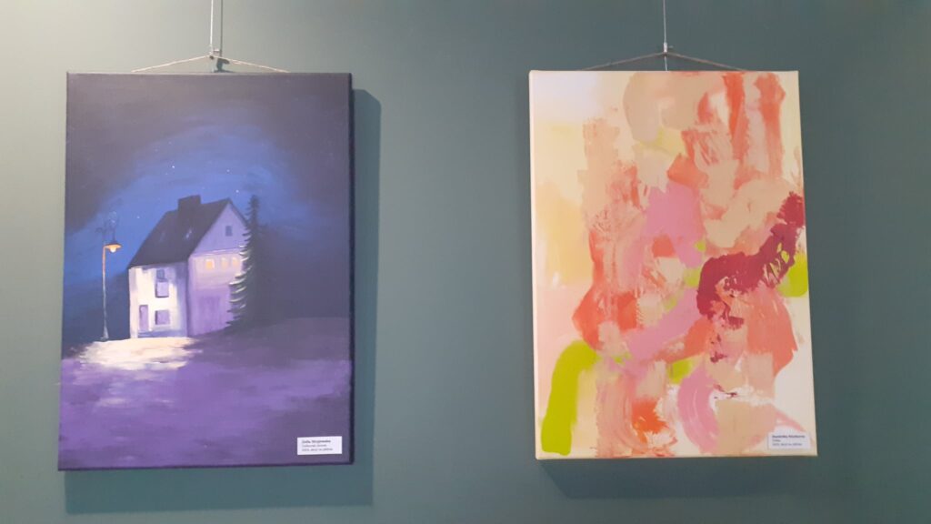 Jej część wystawy to osobista i artystyczna opowieść – abstrakcyjne kompozycje symbolizują drogę człowieka ku spokoju i harmonii. Kolor, faktura, gest pędzla – wszystko to służy opowiedzeniu historii o odnajdywaniu równowagi w świecie nadmiaru bodźców i nieustannego pośpiechu.