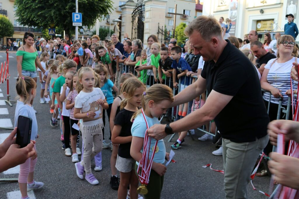 Każdy uczestnik otrzymał okolicznościowy pakiet upominkowy, w tym pamiątkowy medal oraz książkę pt. „Bajki nie tylko dla dzieci” autorstwa ks. Ryszarda Kamińskiego. Najlepsi zawodnicy w poszczególnych biegach stanęli na podium, odbierając nagrody z rąk burmistrza, księży i przedstawicieli MOSiR-u. Wyróżnienia trafiły także do placówek oświatowych, które najliczniej reprezentowały swoje szkoły na biegu – te otrzymały pamiątkowe puchary.