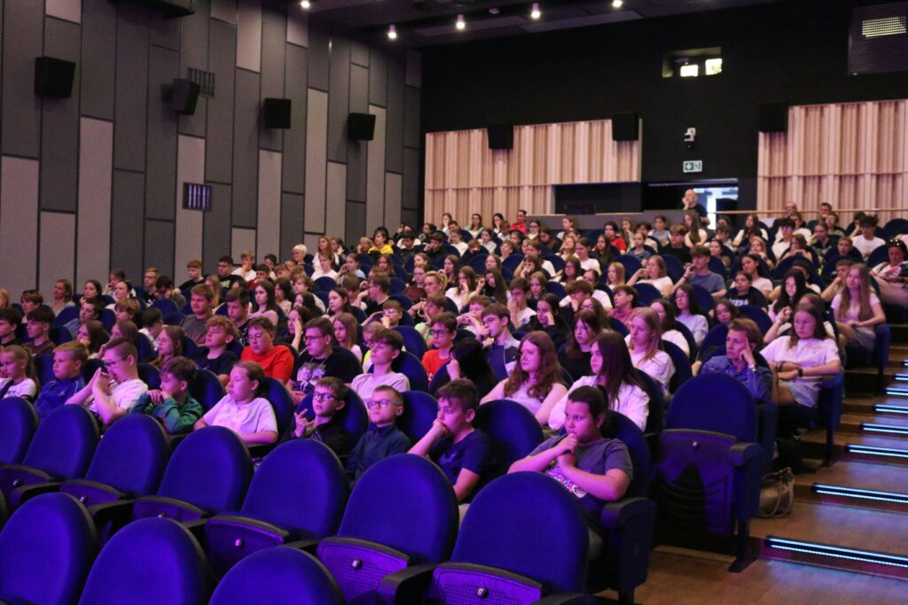 Spotkanie miało aktywną formę – prowadzący chętnie dzielili się autentycznymi historiami, doświadczeniami z życia oraz angażowali młodzież do udziału w dyskusjach i scenicznych animacjach, mających na celu zobrazowanie konsekwencji hejtu i siły pozytywnej komunikacji.