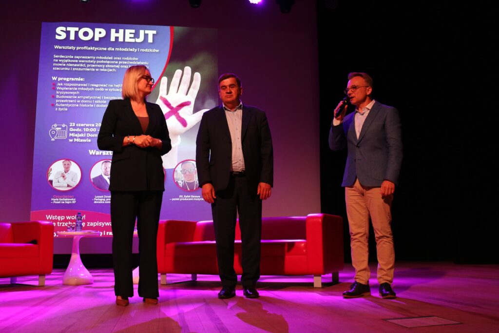 W poniedziałek, 23 czerwca w Kinie Kosmos w Mławie, odbyły się wyjątkowe warsztaty profilaktyczne dla młodzieży i rodziców, zatytułowane „Stop hejt”. Spotkanie poświęcono przeciwdziałaniu przemocy słownej oraz budowaniu szacunku i zrozumienia w relacjach międzyludzkich – zarówno w środowisku szkolnym, jak i domowym.