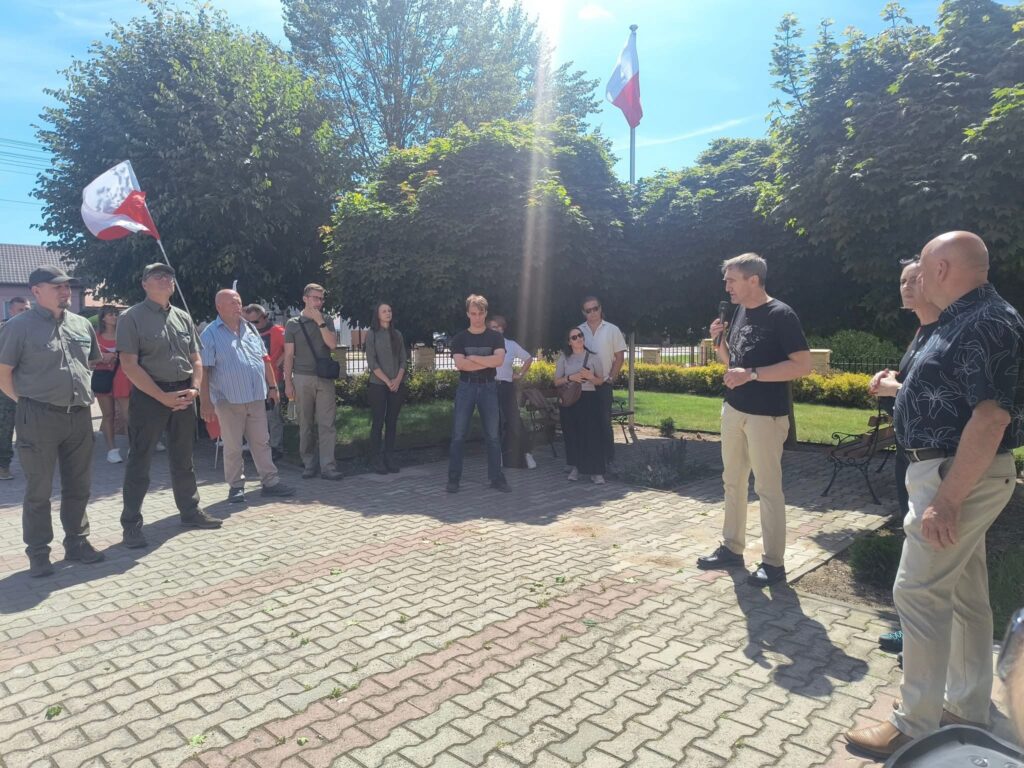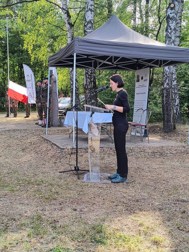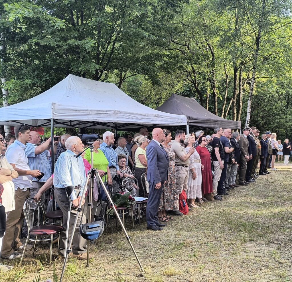 Wędrówka zakończyła się przy tablicy upamiętniającej ostatnich poległych partyzantów. To właśnie tam, punktualnie o godzinie 17:00, rozpoczęły się oficjalne uroczystości patriotyczne.