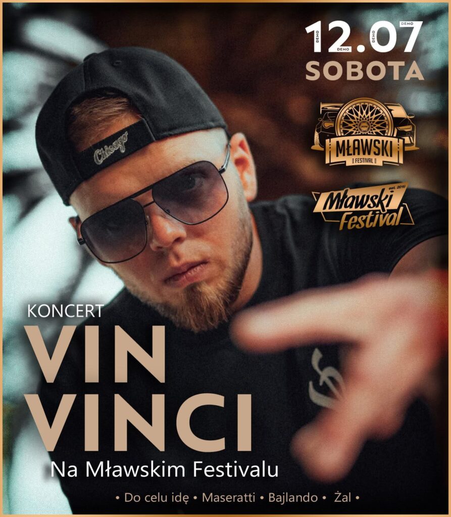 Na scenie The Event – Mławski Festival pojawi się VIN VINCI, jeden z najmocniejszych głosów młodej sceny hip-hopowej. Jego hity – „Do celu idę”, „Maserati”, „Bajlando” czy „Żal” – zna każdy, kto choć raz włączył TikToka czy YouTube’a.