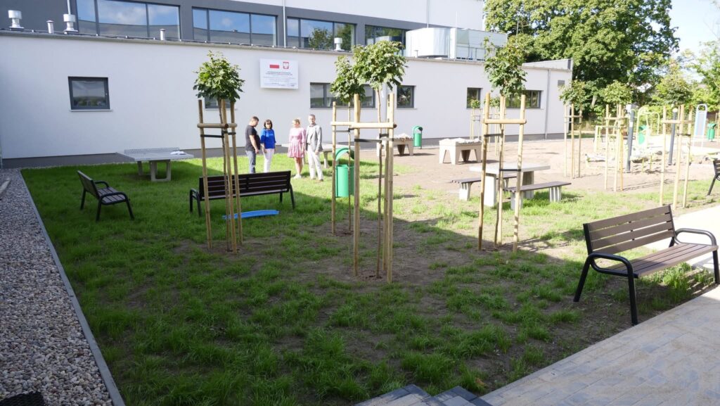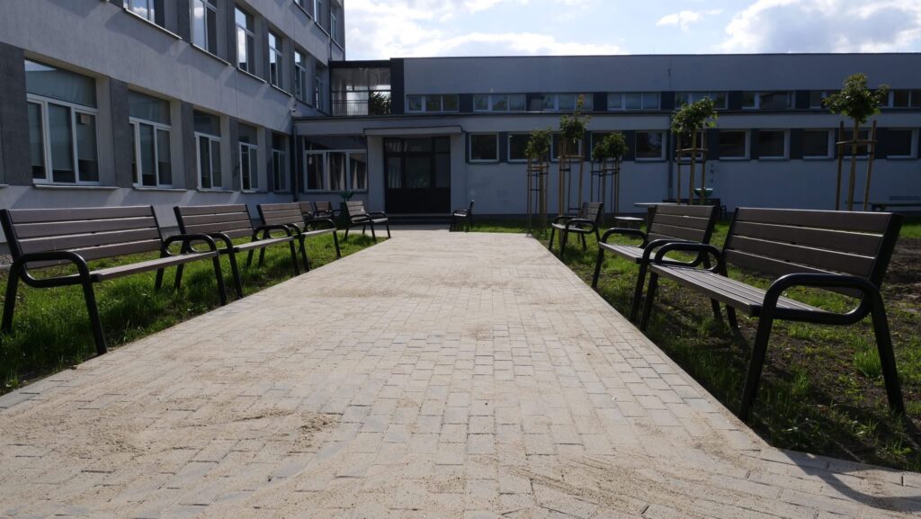 Na nowym terenie rekreacyjnym, zlokalizowanym pomiędzy budynkiem szkoły a salą gimnastyczną, zamontowano siłownię zewnętrzną oraz elementy do aktywnego spędzania czasu dla młodzieży, m.in. ławki, kamienne stoły do gry w szachy, piłkarzyki oraz stoły do ping-ponga. Część terenu została już obsadzona roślinami, a do wykonania pozostają jedynie prace kosmetyczne, takie jak uporządkowanie terenu i nasadzenia roślinności.