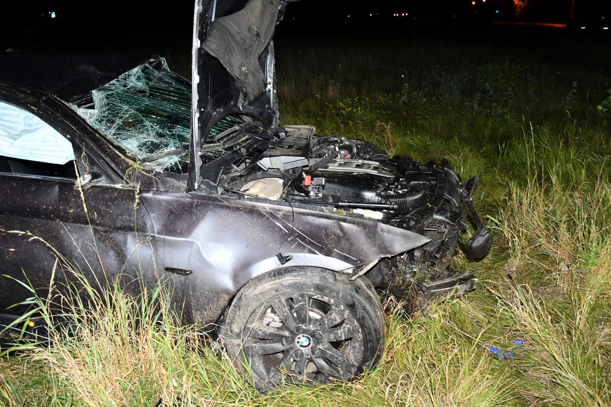 Siła uderzenia była duża – volkswagen po zderzeniu wpadł do przydrożnego rowu, a BMW dachowało i zatrzymało się na polu.