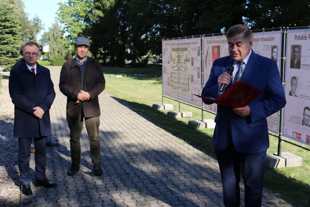 Uroczystości rozpoczęło otwarcie plenerowej wystawy przygotowanej przez Muzeum Ziemi Zawkrzeńskiej pt. „Polskie Państwo Podziemne w okupowanym powiecie mławskim”. Ekspozycja, którą można oglądać przy kościele pw. Przemienienia Pańskiego, została zaprezentowana przez dyrektora MZZ Roberta Zaborowskiego, przybliżającego tematykę i znaczenie przedstawionych materiałów.