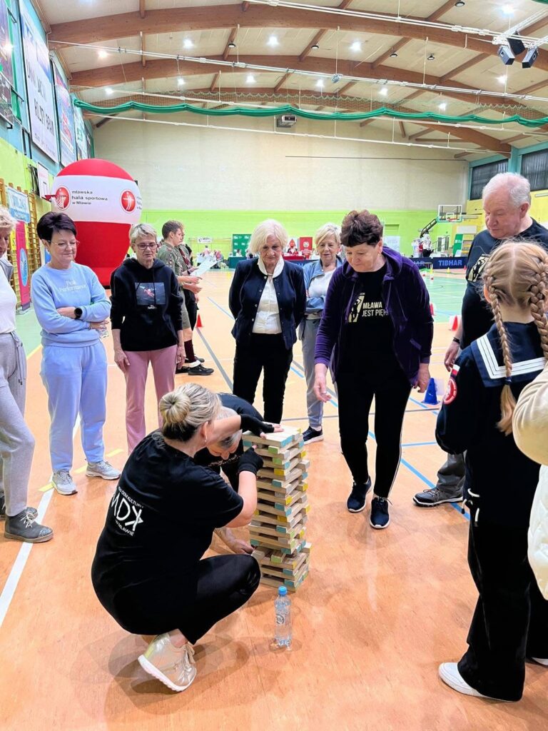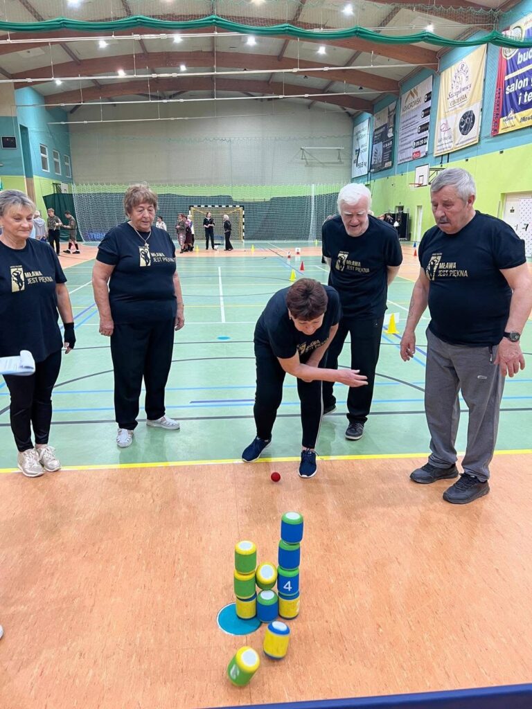 Kolejny dzień, 18 października, przyniósł prawdziwe sportowe emocje. Od rana Mławska Hala Sportowa tętniła życiem – wszystko za sprawą „Olimpiady Sprawnościowej”, przygotowanej specjalnie dla seniorów.