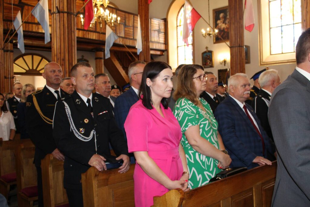 Homilię wygłosił ks. dr Wojciech Kućko Przedstawił w niej historię tworzenia ochotniczych straży pożarnych na terenie gminy Szydłowo (wcześniej gminy Dębsk).