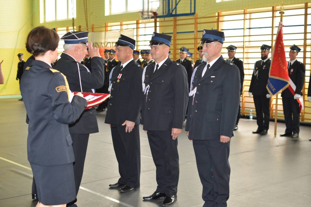 Srebrnymi medalami “Za zasługi dla Pożarnictwa” odznaczono druhów Jarosława Kaszubę i Emila Miecznikowskiego z OSP Szydłowo oraz druha Damiana Szelugę z OSP Garlino.