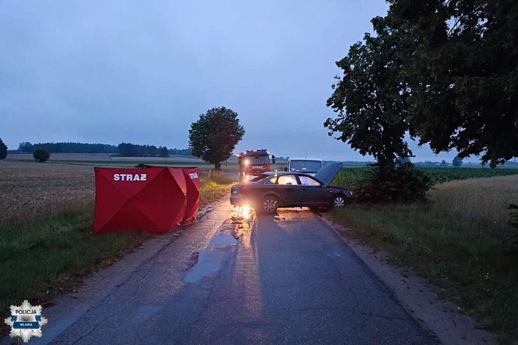 Jak wynika z ustaleń policjantów, pracujących z udziałem prokuratora, na miejscu zdarzenia, kierujący audi 22-letni mieszkaniec pow. mławskiego, na łuku drogi, stracił panowanie nad pojazdem, zjechał z drogi a następnie tylnym bokiem auta uderzył w drzewo. Jeden z trójki pasażerów siedzących na tylnej kanapie, 36-letni mężczyzna, zginał na miejscu wypadku.