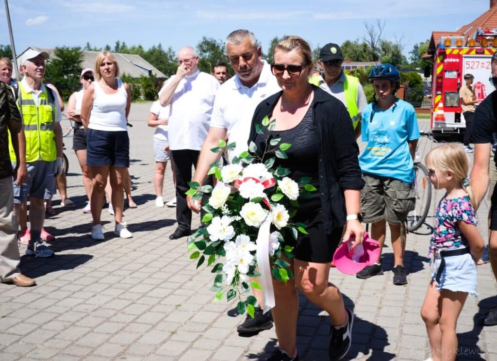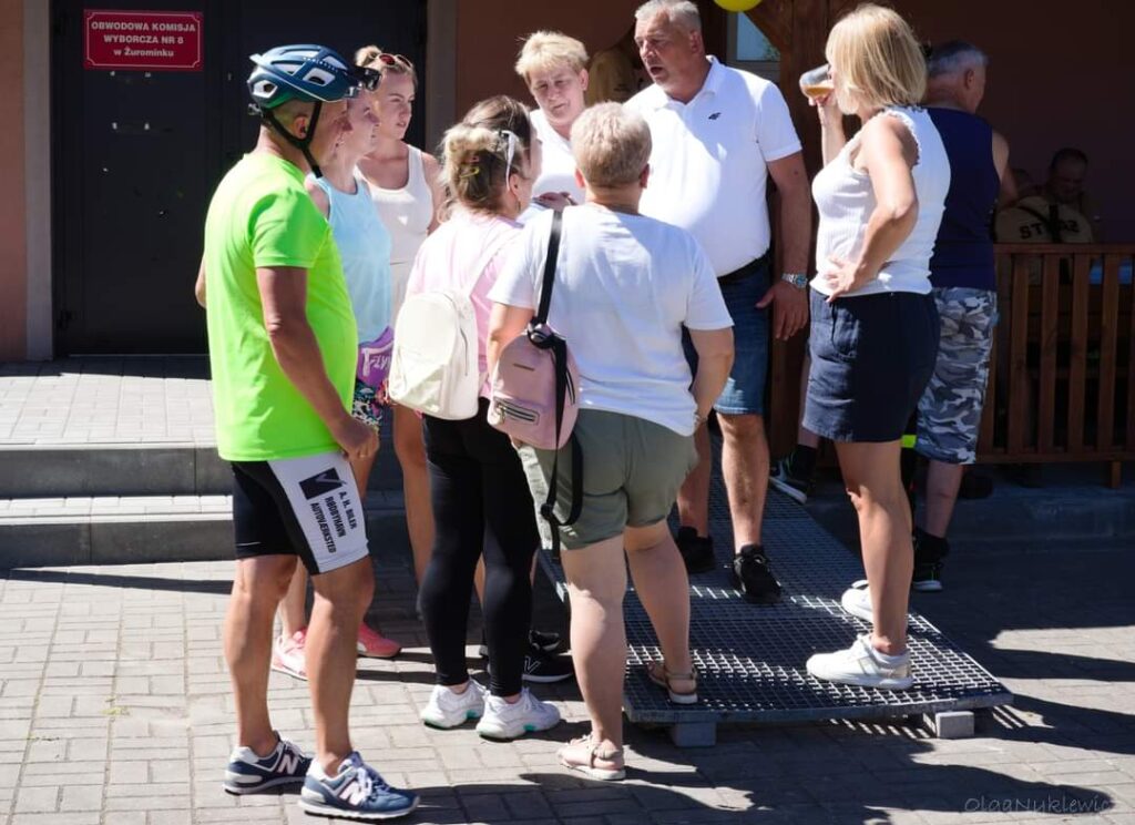 Następnie uczestnicy rajdu ruszyli w dalszą drogę do Żurominka. Przy Pomniku Pułku Szwoleżerów wójt gminy Grzegorz Woźniak oraz Anna Wtulich Dyrektor GBP w Wiśniewie złożyli kwiaty. Następnie Piotr Karwowski opowiedział o historii Żurominka.
