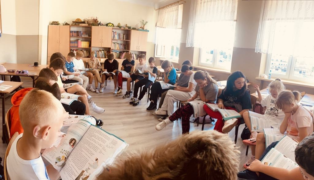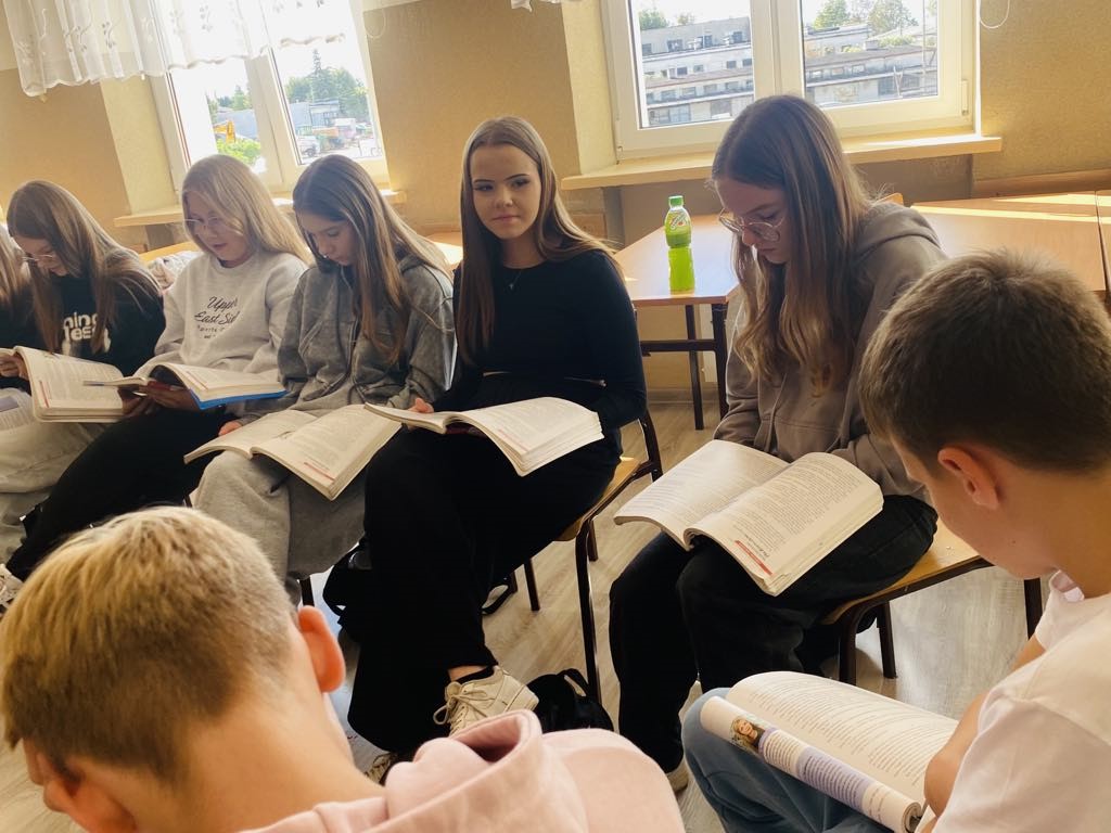Czytaliśmy głośno na pierwszej lekcji w klasach 1 – 3 i na lekcjach języka polskiego w klasach 4 – 8.