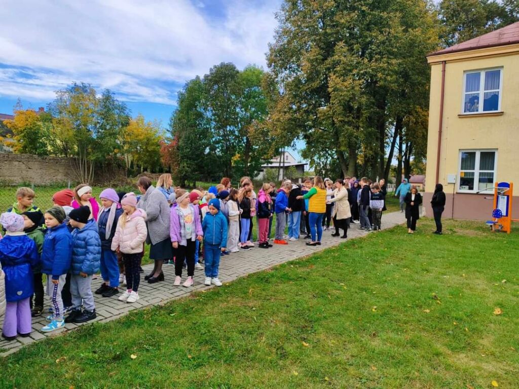 Cała akcja przebiegła zgodnie z planem – wszyscy uczniowie, nauczyciele i pracownicy opuścili budynek w sposób szybki i bezpieczny, zgodnie z obowiązującymi procedurami.
