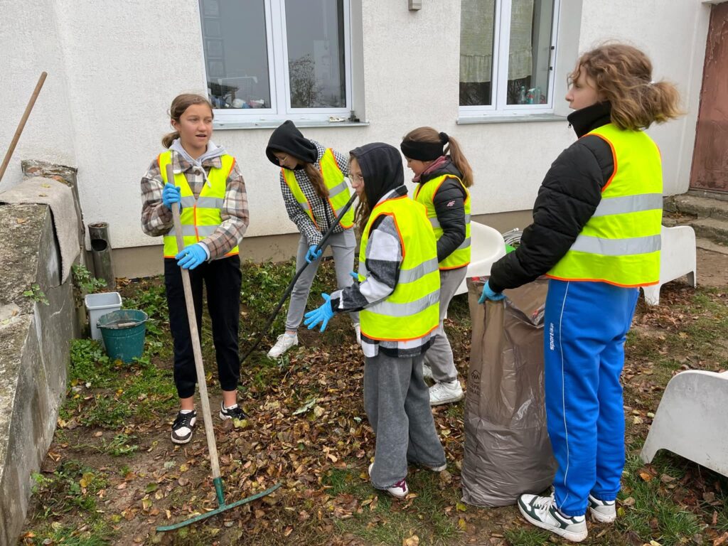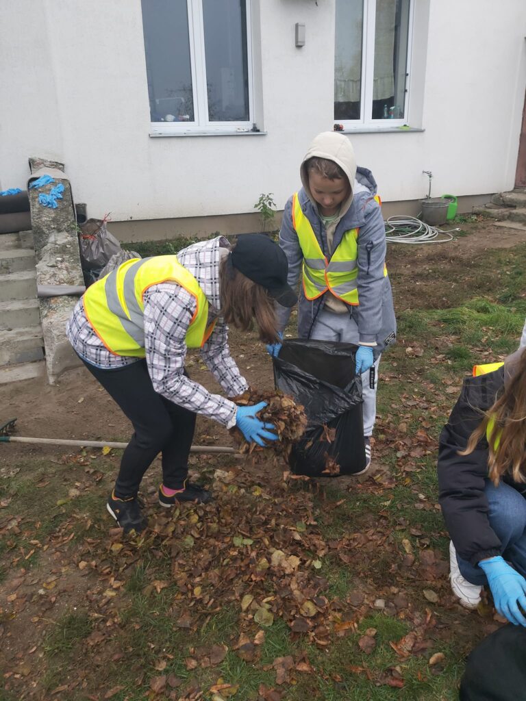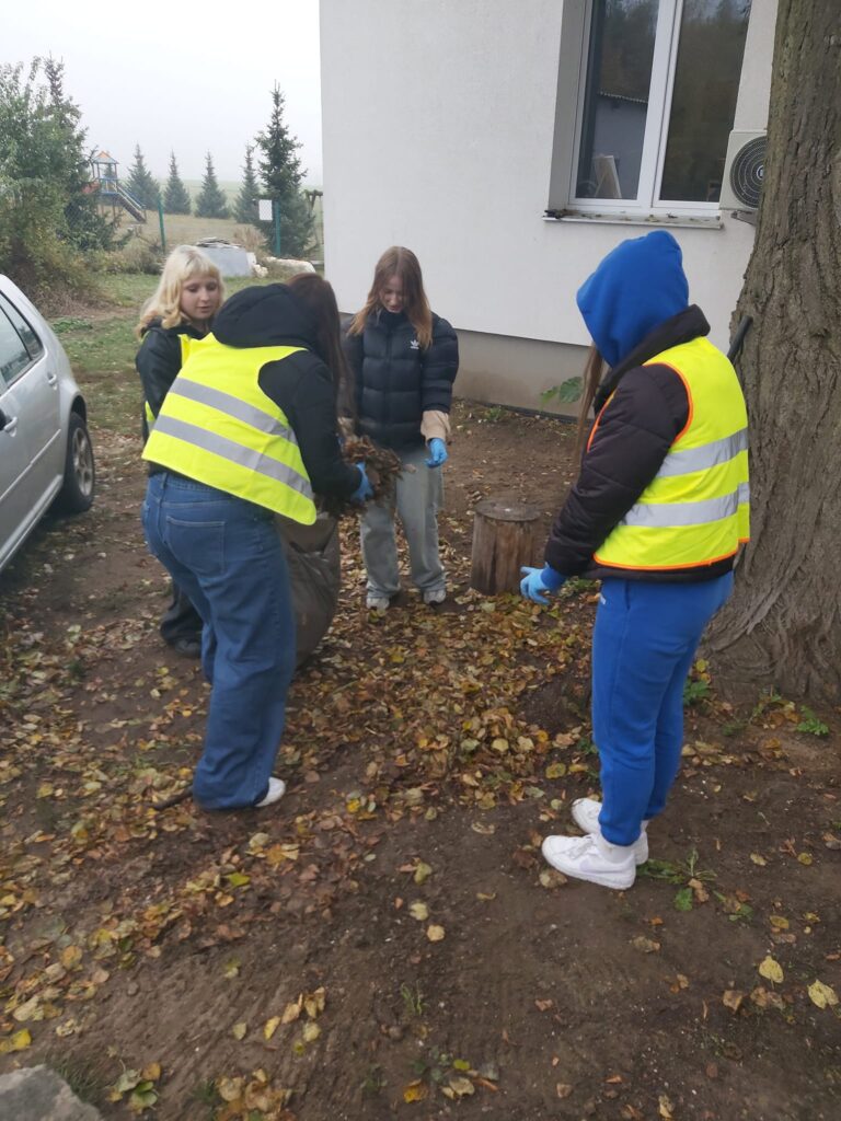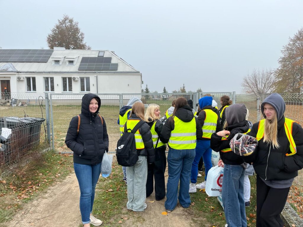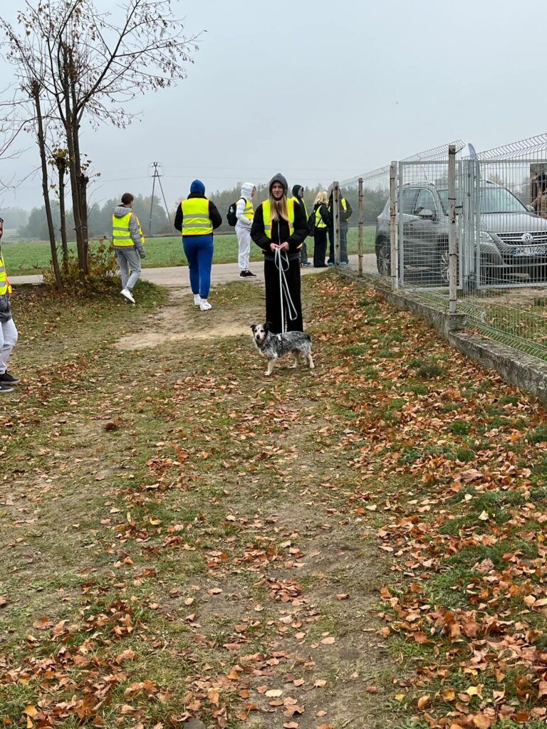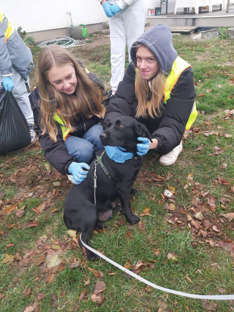 Podczas wizyty uczniowie, pełni zapału do pracy, pomagali w sprzątaniu najbliższego otoczenia schroniska, dbając o porządek i czystość w miejscu, które stanowi dom dla wielu potrzebujących czworonogów.