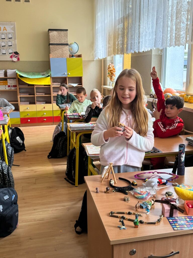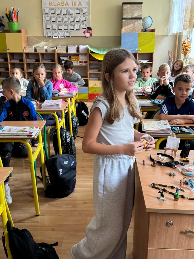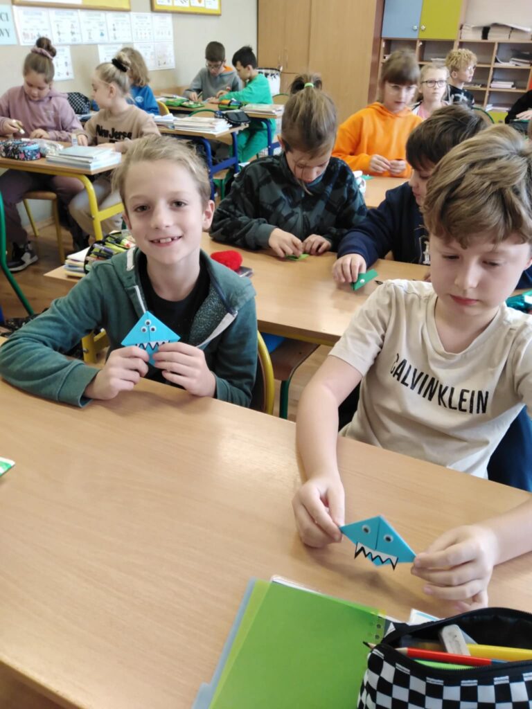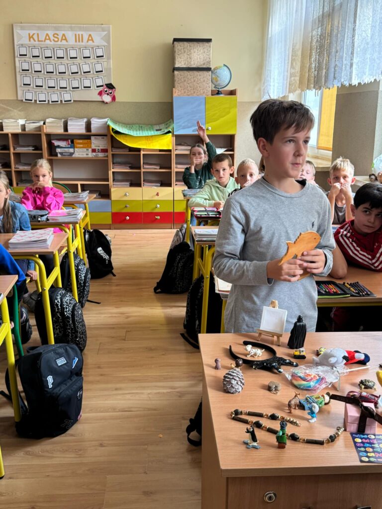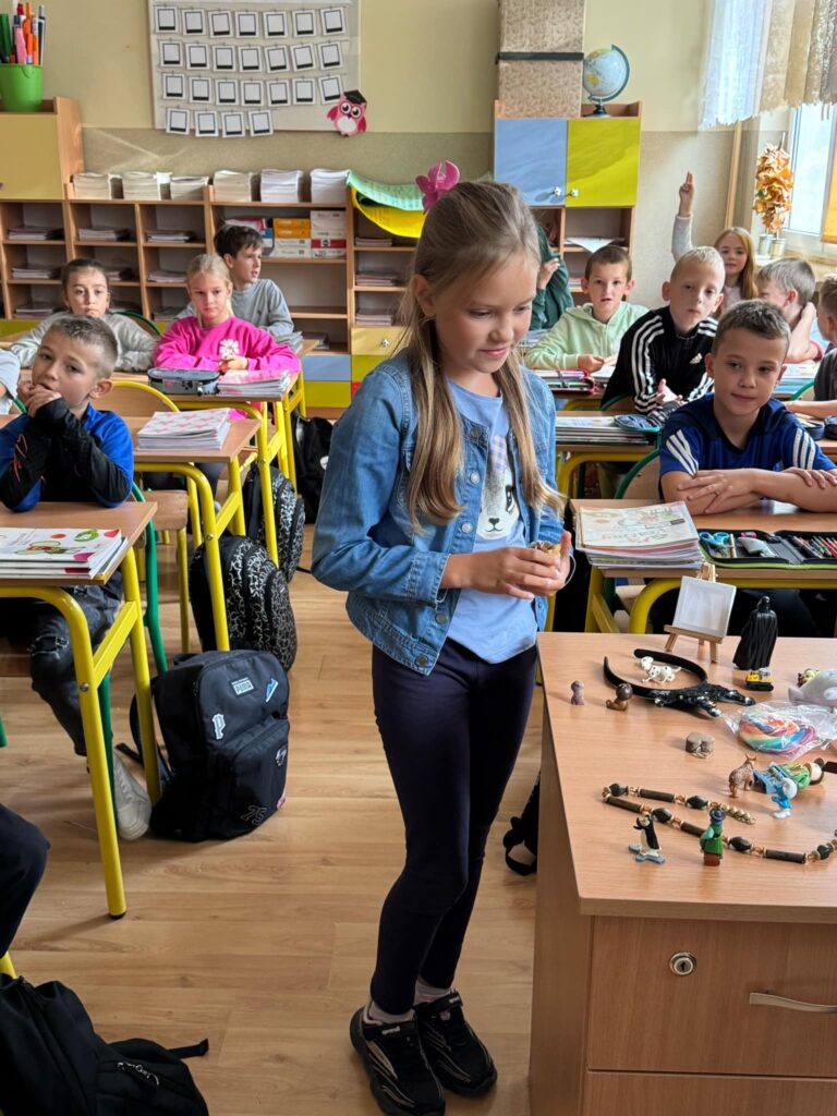 Uczniów odwiedziła pani Bogumiła Pawłowska z Biblioteki Pedagogicznej w Mławie. Podczas zajęć pani Bogumiła przeczytała dzieciom książkę pt.: „Wypożyczalnia skrzydeł” – jest to opowieść o magii czytania. Następnie dzieci brały udział w zabawach, a na koniec wykonały zakładki do książek.