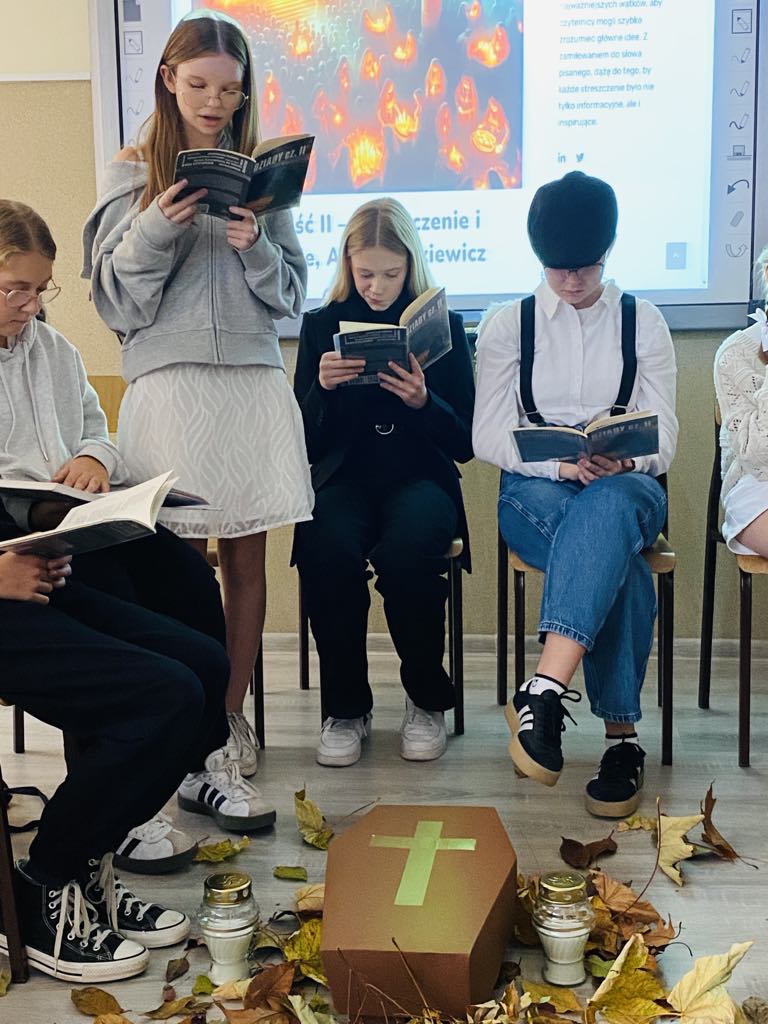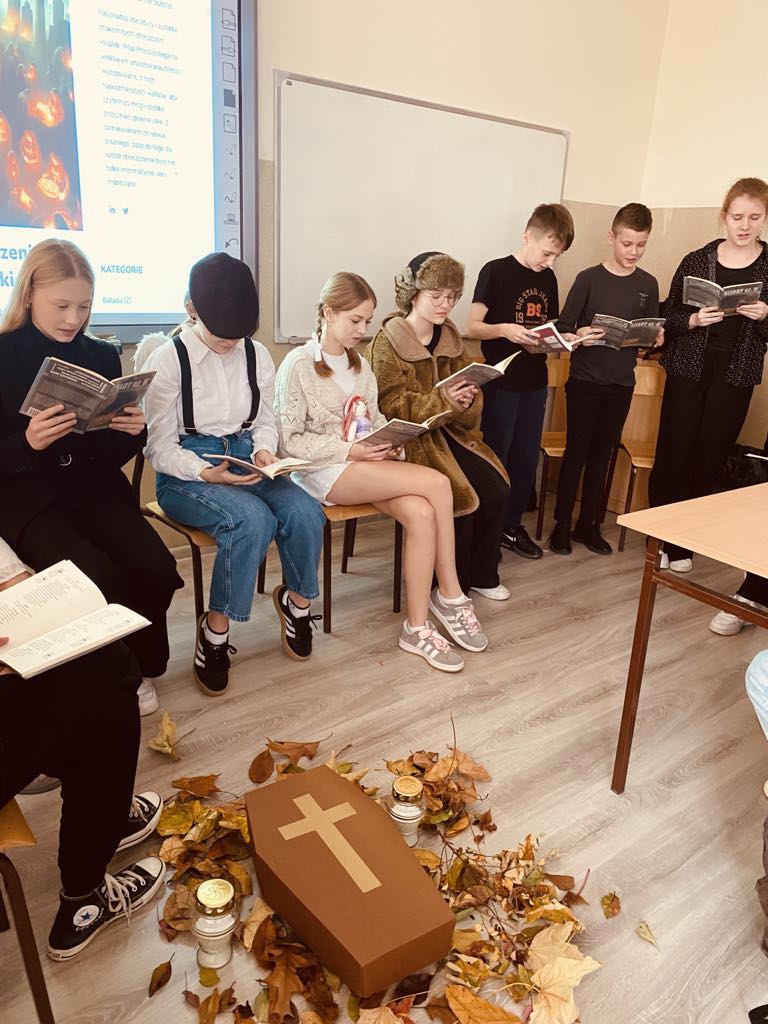 Inscenizacja Dziadów część II Adama Mickiewicza – czytanie lektury przez uczniów z klasy 7a [ZDJĘCIA]