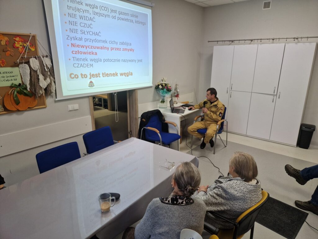 W poniedziałek 18 listopada 2024 r. funkcjonariusze Komendy Powiatowej PSP w Mławie odwiedzili podopiecznych Dziennego Domu Senior+ w Mławie. Tematem spotkania było zagrożenie pożarowe związane z użytkowaniem instalacji grzewczych oraz zatrucie tlenkiem węgla.