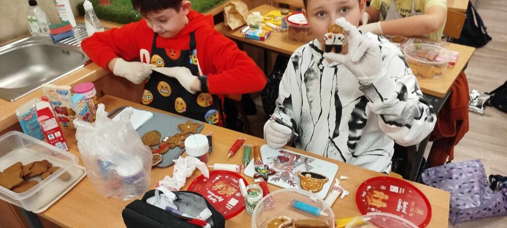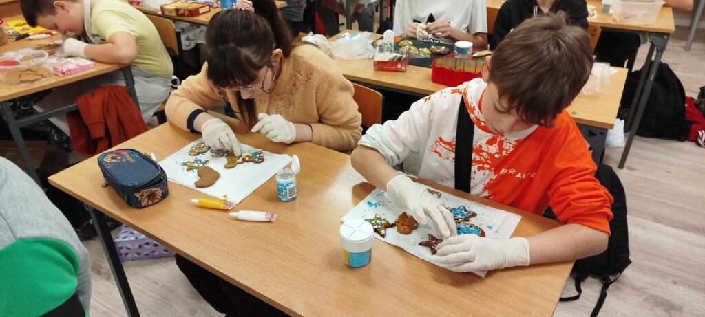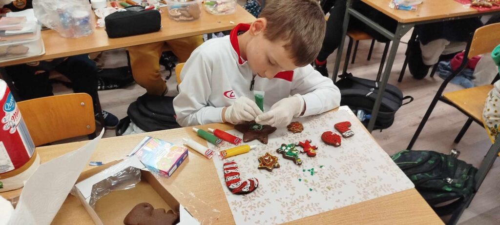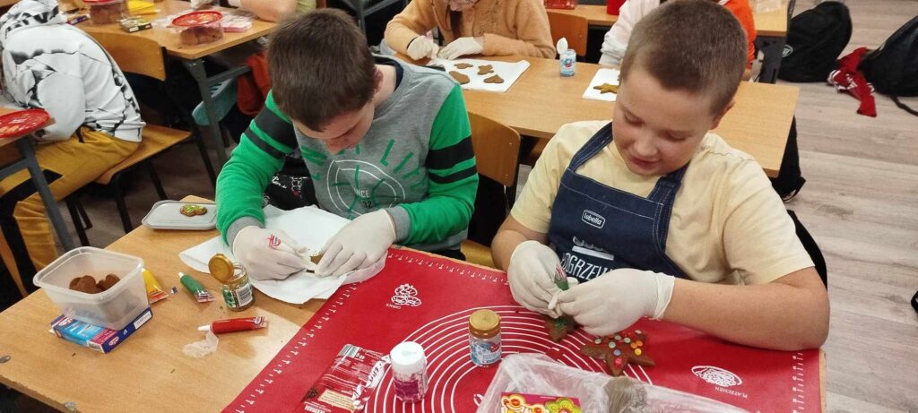 W ramach lekcji techniki uczniowie klasy 5 mieli okazję wziąć udział w wyjątkowych warsztatach dekorowania pierników. To nie tylko kreatywna zabawa, ale także doskonała okazja do nauki precyzyjnych umiejętności rękodzielniczych, które rozwijają wyobraźnię, cierpliwość i zdolności manualne. Warsztaty odbyły się w szkole, a ich celem było połączenie tradycji z nowoczesnością poprzez twórcze podejście do przygotowywania świątecznych słodkości.