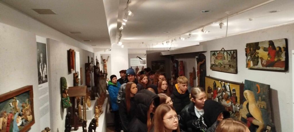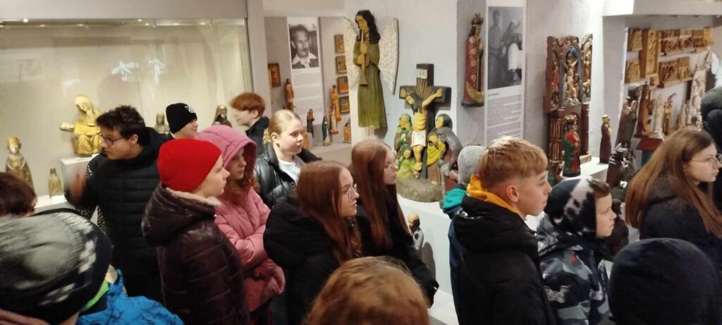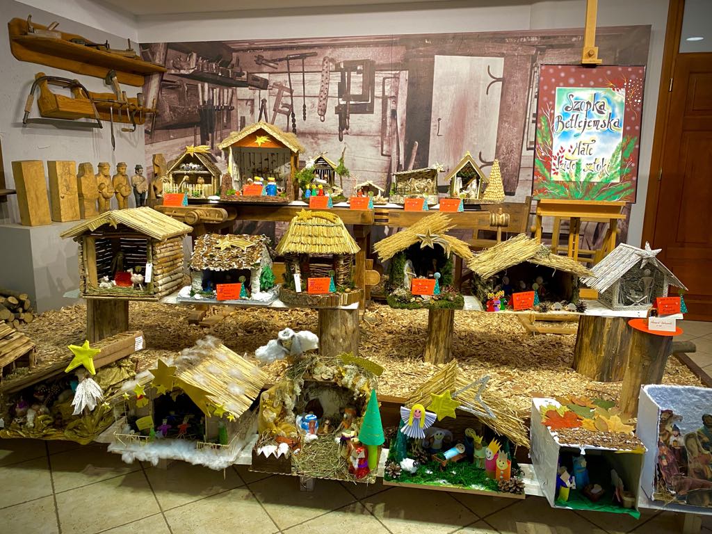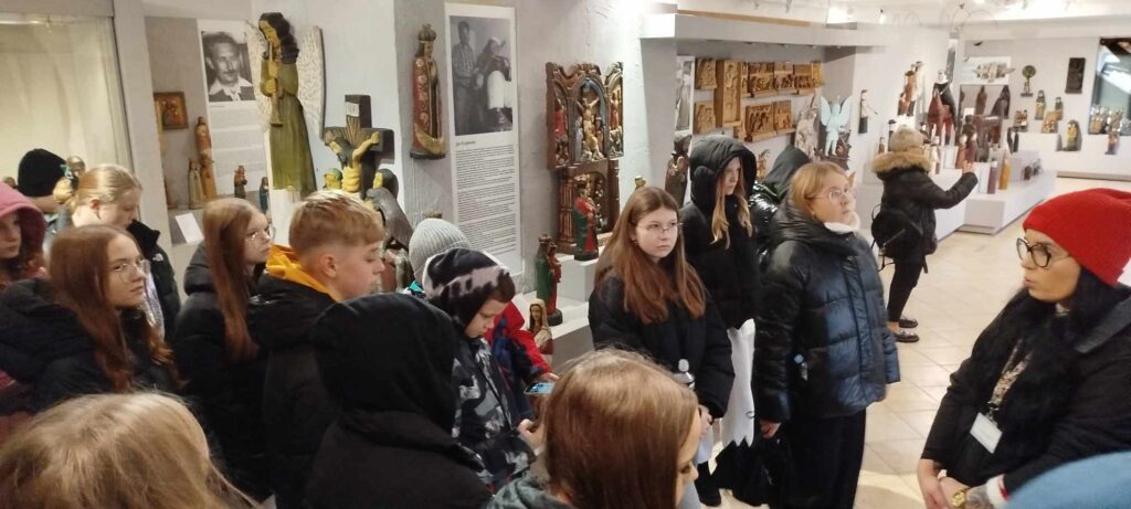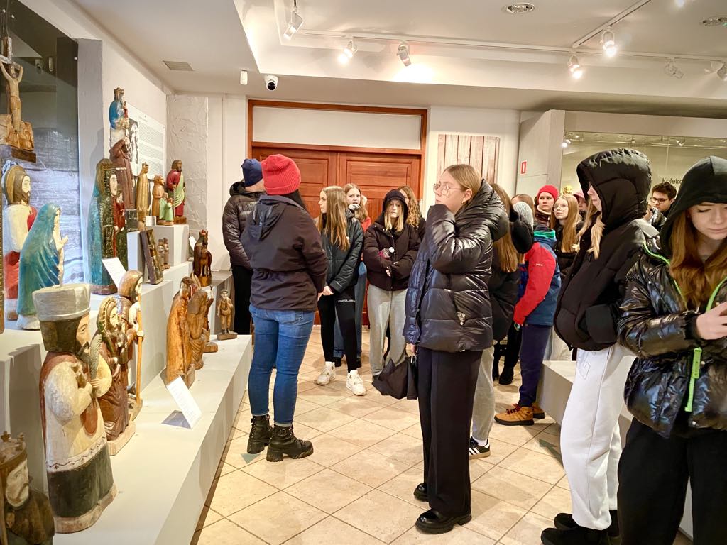 Następnie wszyscy udali się do muzeum, gdzie czekała bogata kolekcja rzeźby oraz wystawa szopek bożonarodzeniowych. Szopki zachwycały swoją różnorodnością i kunsztem wykonania, przypominając o zbliżających się świętach. W trakcie zwiedzania uczniowie mogli również poznać historię i tradycje związane z okresem Bożego Narodzenia na Mazowszu.
