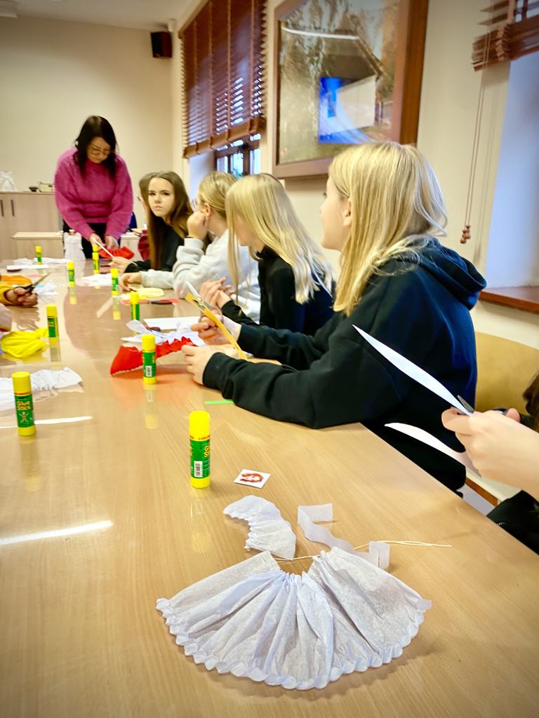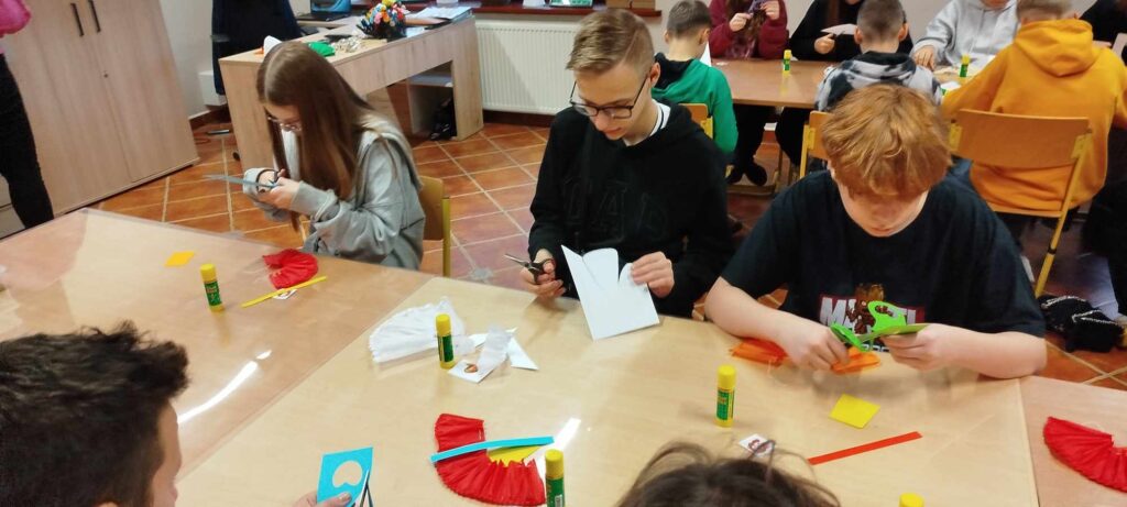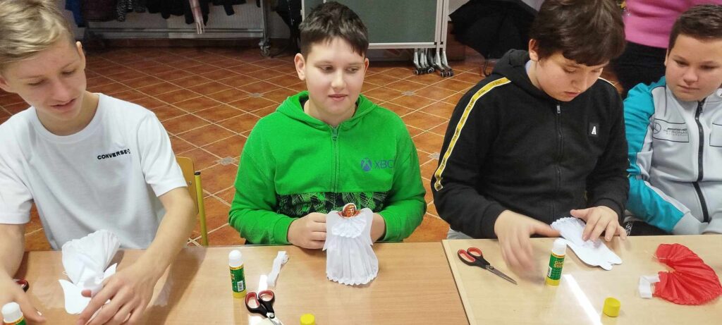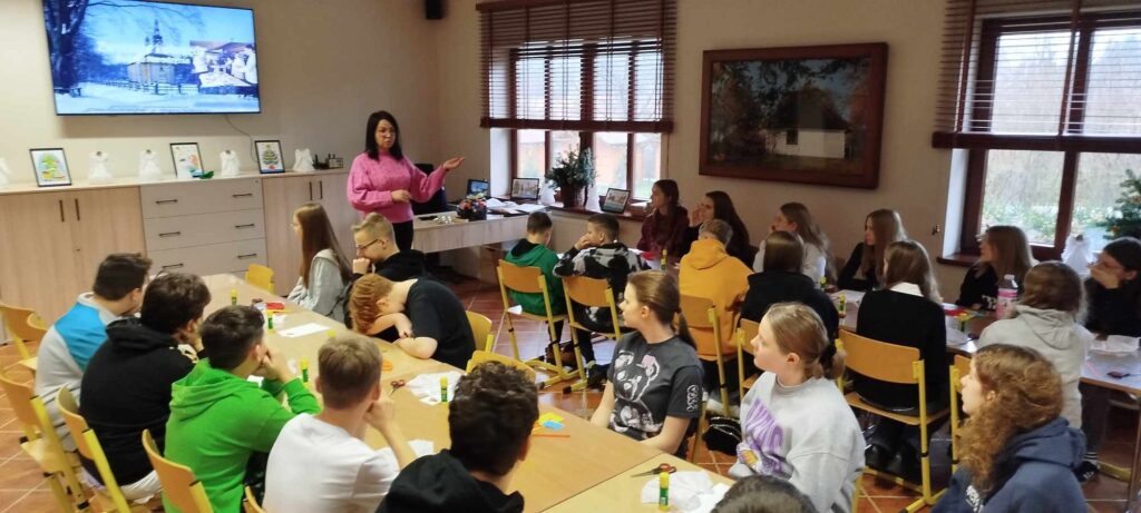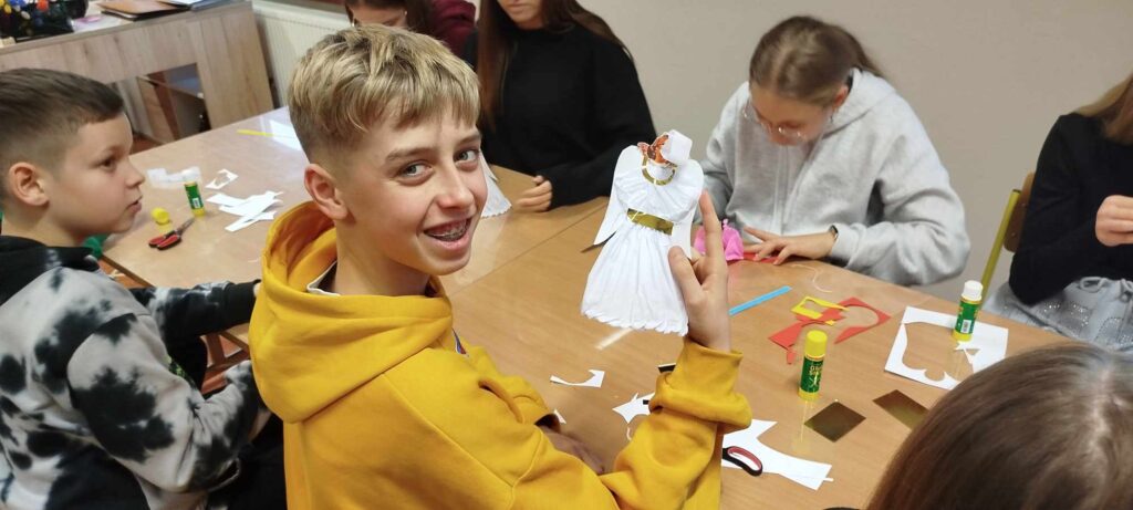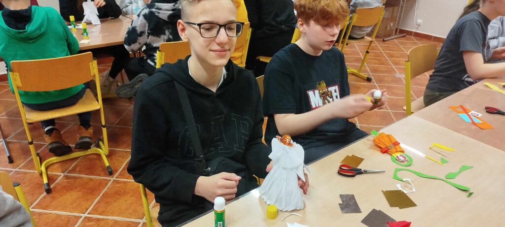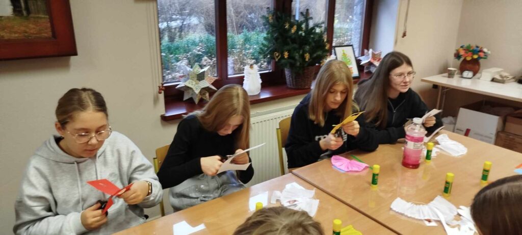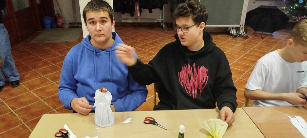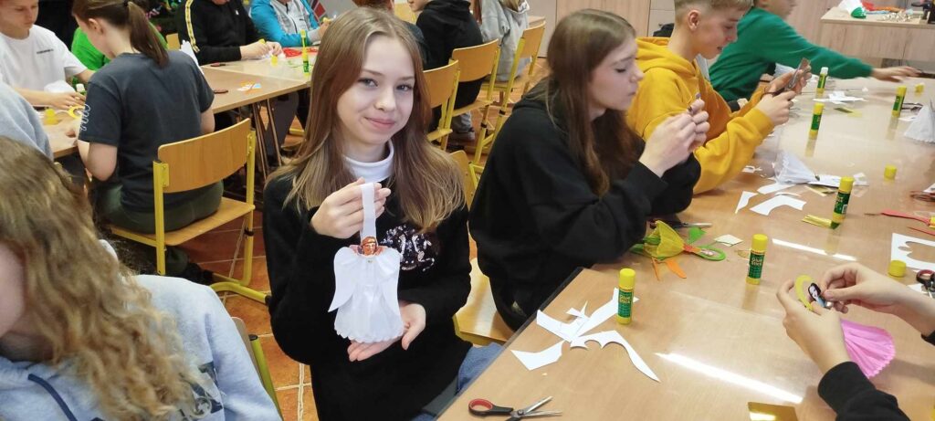 Jednym z najciekawszych elementów wycieczki były warsztaty ozdób choinkowych. Uczniowie mieli okazję samodzielnie wykonać tradycyjne ozdoby, które dawniej zdobiły wiejskie choinki. Warsztaty były nie tylko okazją do twórczej zabawy, ale również do poznania dawnych zwyczajów bożonarodzeniowych.