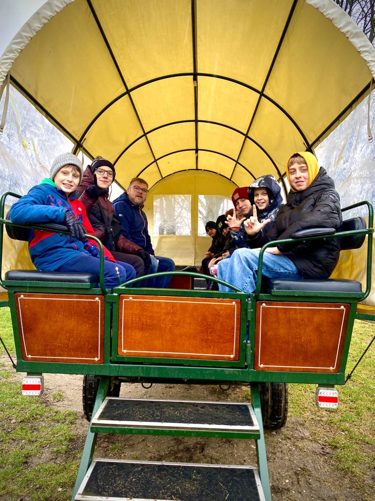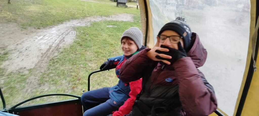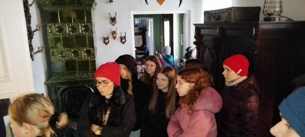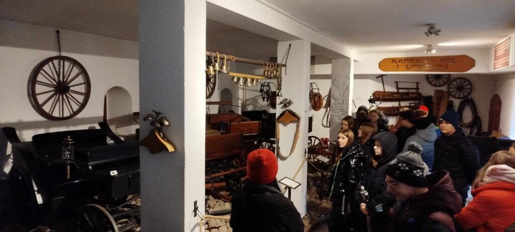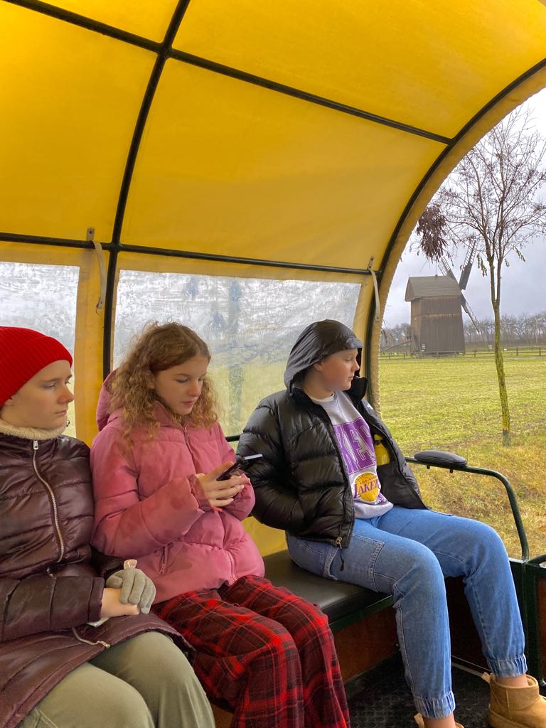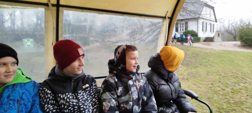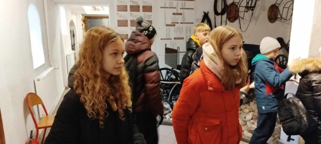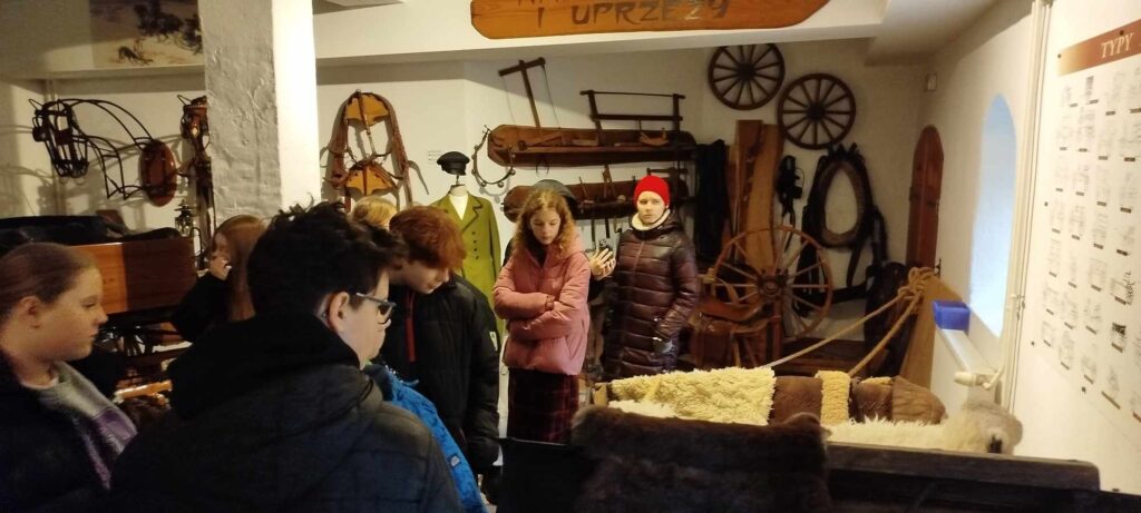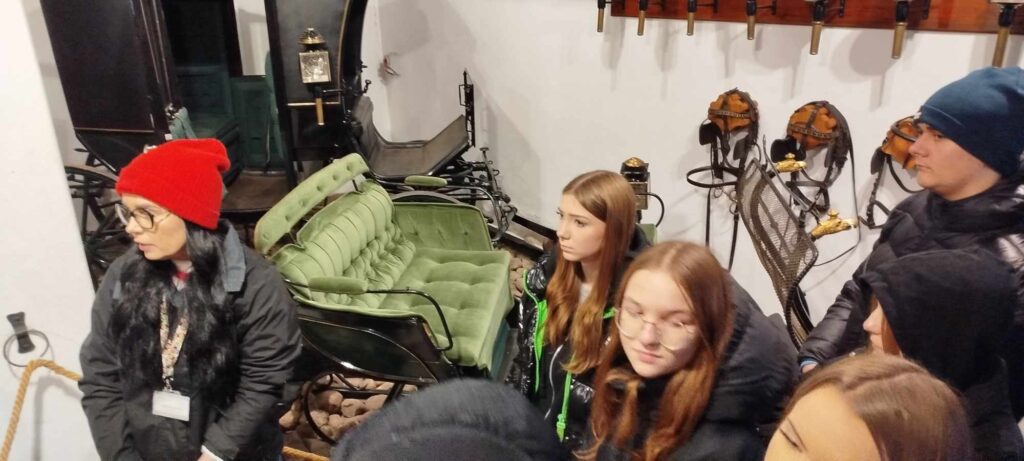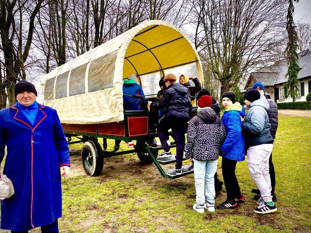 Pierwszym punktem programu było zwiedzanie powozowni, gdzie młodzież mogła zobaczyć różne środki transportu dworskiego. Wizyta w tym miejscu była okazją do poznania, jak kiedyś podróżowała szlachta – zarówno na co dzień, jak i podczas ważnych uroczystości. Po tej części nastąpił przejazd bryczkami, co sprawiło uczniom wiele radości i pozwoliło poczuć klimat dawnych czasów.