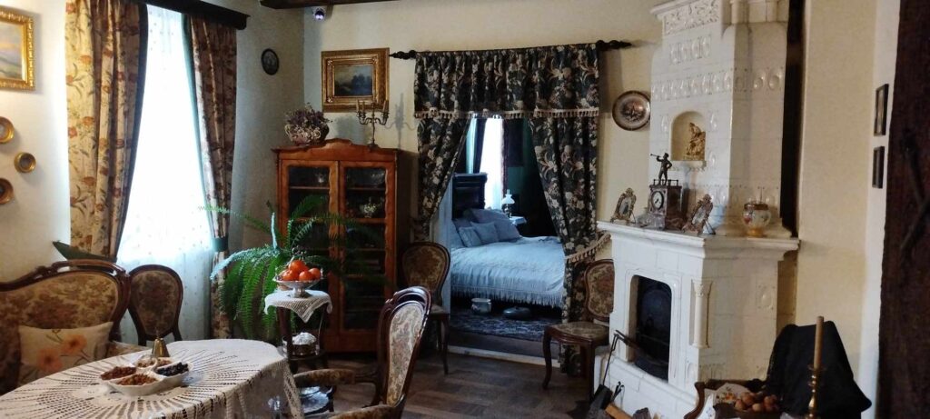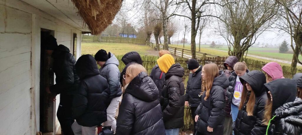 Kolejnym etapem było zwiedzanie zabytkowego kościoła, dworu dziedzica oraz tradycyjnych wiejskich chat. W domu chłopa i pokoju komornika młodzież mogła zobaczyć, jak wyglądało codzienne życie mieszkańców wsi w dawnych czasach. Te miejsca doskonale oddały kontrasty między życiem szlachty a prostym życiem chłopów.