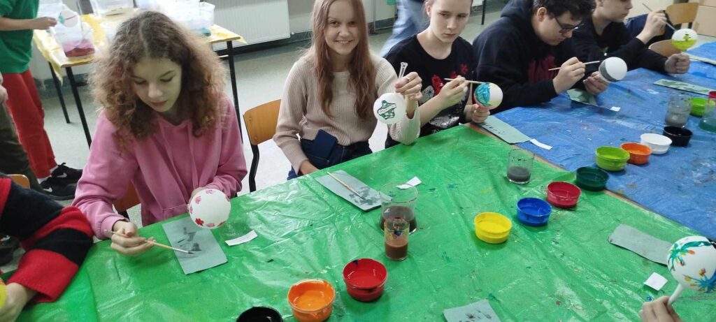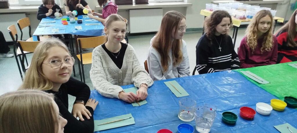 Warsztaty w klasie 7a były doskonałym przykładem na to, jak można połączyć świąteczną atmosferę z rozwijaniem umiejętności artystycznych. Uczniowie nie tylko świetnie się bawili, ale także stworzyli wyjątkowe ozdoby, które będą przypominały im o wspólnie spędzonym czasie i świątecznej radości.