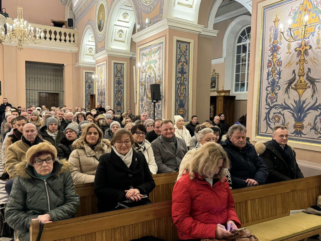 Po koncercie głos zabrał proboszcz parafii Świętego Stanisława Biskupa Męczennika, ks. kan. Sławomir Krasiński, który podziękował wszystkim za przybycie, podkreślając duchowy wymiar wydarzenia i jego rolę w umacnianiu wspólnoty. Następnie odprawiona została uroczysta msza święta. Wśród uczestników znaleźli się przedstawiciele władz miasta, w tym Burmistrz Piotr Jankowski, jego zastępcy Marcin Burchacki i Mariusz Szczechowicz, Radni Miasta, a także Anna Ewa Cicholska, Posłanka na Sejm Rzeczypospolitej Polskiej. Obecność samorządowców i parlamentarzystki była symbolicznym wsparciem dla idei lokalnej wspólnoty i tradycji świątecznych.