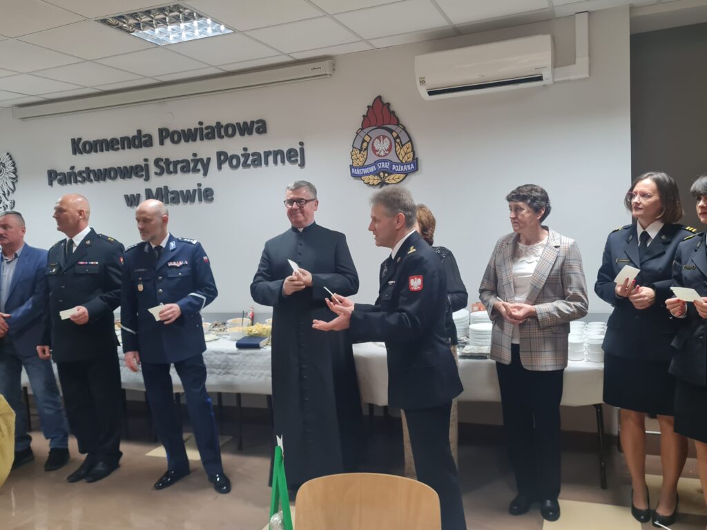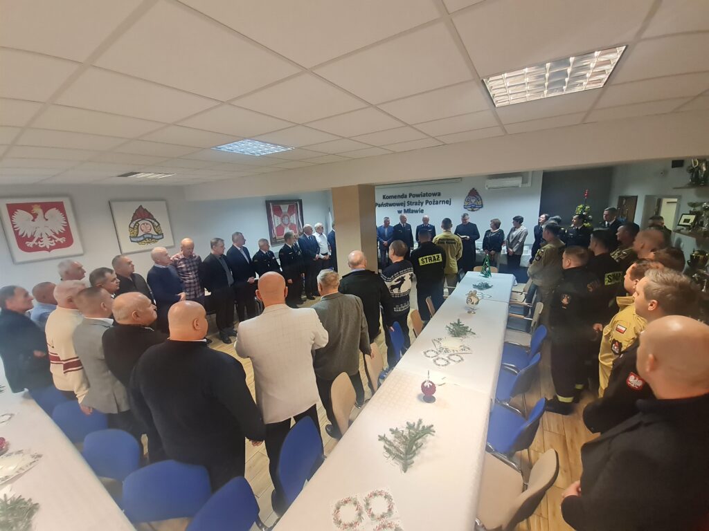 W czwartek, 19 grudnia 2024 roku, odbyło się spotkanie wigilijne funkcjonariuszy i pracowników cywilnych Komendy Powiatowej Państwowej Straży Pożarnej w Mławie. W uroczystości wzięli udział zaproszeni goście, w tym emerytowani strażacy, przedstawiciele władz samorządowych oraz Proboszcz parafii św. Stanisława BM w Mławie, ks. kan. Sławomir Krasiński.