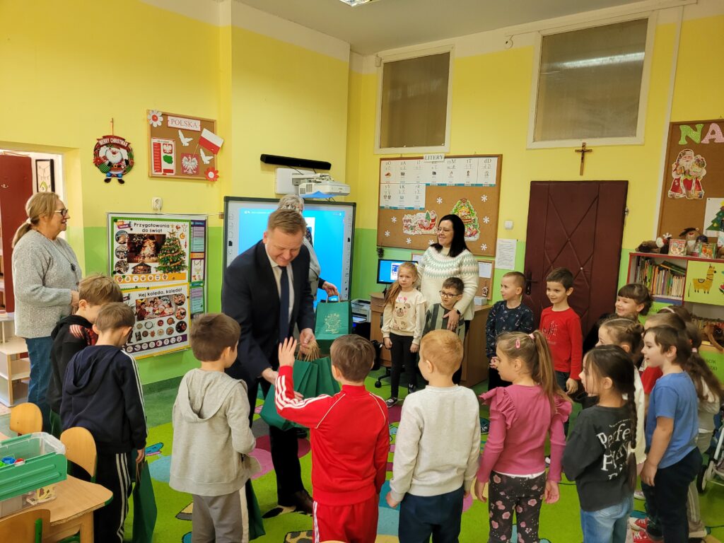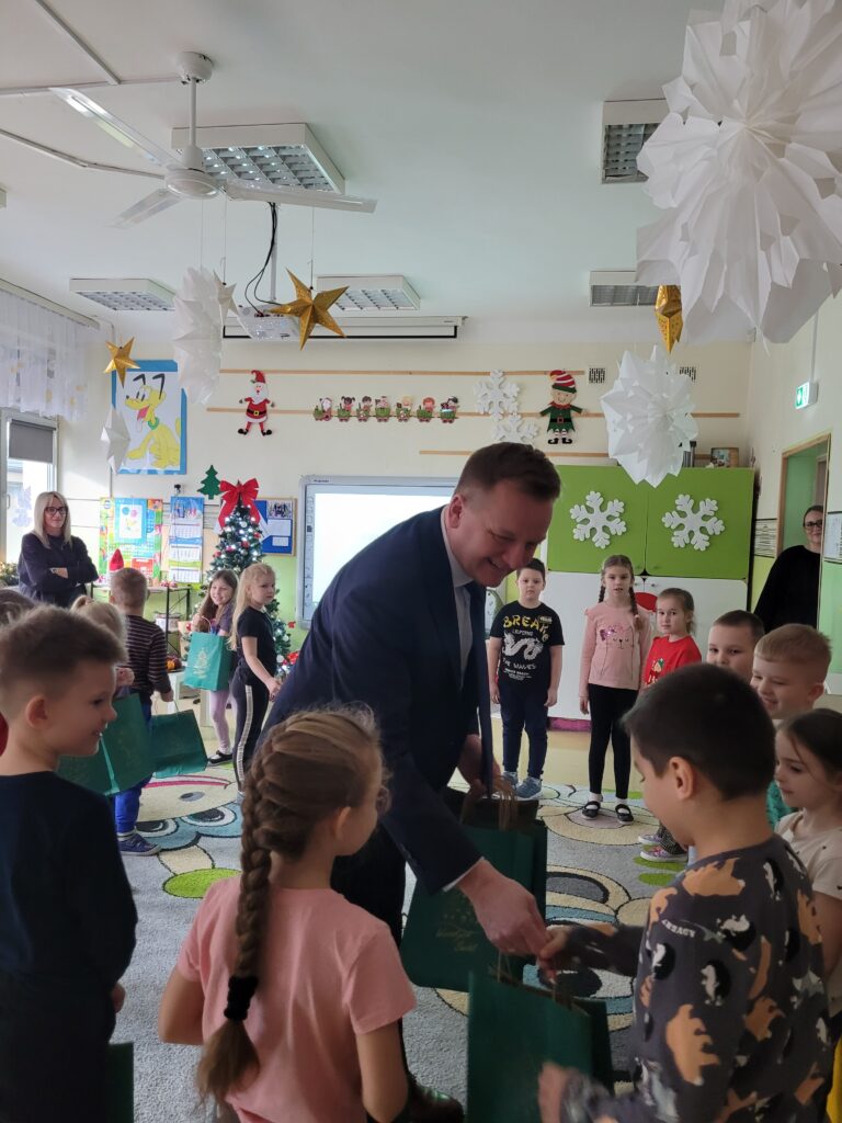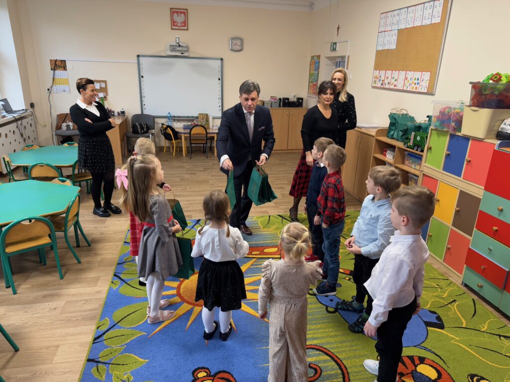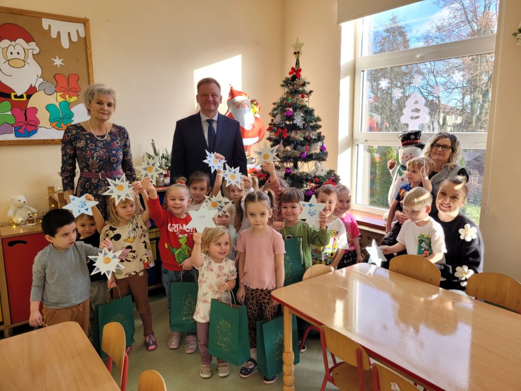 W dniu 20 grudnia 2024 r. dzieci korzystających z wychowania przedszkolnego w mławskich przedszkolach odwiedził Burmistrz Miasta Mława Piotr Jankowski oraz Zastępca Burmistrza Miasta Mława Mariusz Szczechowicz. Dzieciaki z radością powitały przybyłych gości, śpiewając i recytując wierszyki, nagradzając tym samym przybyłych najwspanialszymi uśmiechami.