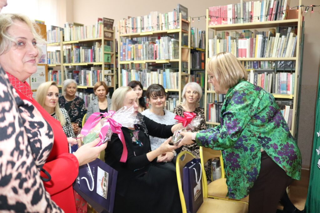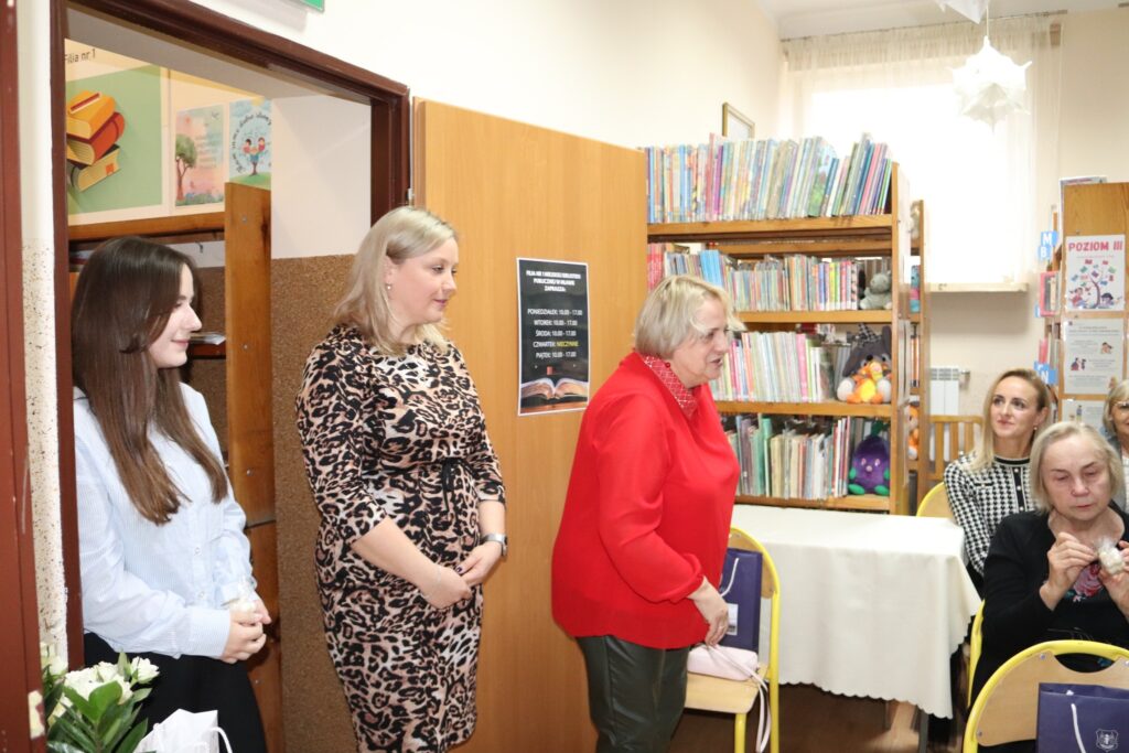 Szkołę nr 4 reprezentowały Dyrektor Beata Ciesielska-Betlińska oraz nauczyciel bibliotekarz Hanna Kanigowska, które w imieniu społeczności szkolnej przekazały na ręce pani Dyrektor Marii Świtoń pamiątkowy upominek – życzenia grawerowane na drewnie.