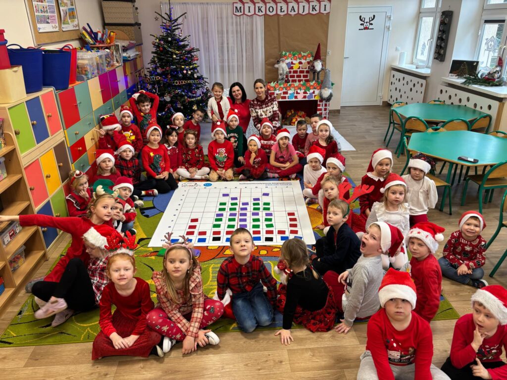 Wspaniały czas świąt Bożego Narodzenia coraz bliżej, dlatego przedszkolaki tym razem kodowały świąteczne obrazki. Zakodowany Mikołaj, renifer i prezent to świetny sposób na naukę logicznego myślenia, przewidywania, planowania i dostrzegania zależności, a także czas wspaniałej zabawy.10 grudnia 2024 r. w grupie IV, odbyły się zajęcia otwarte dla dyrekcji i koleżanek z przedszkola. Tematem przewodnim było „Świąteczne kodowanie”. „Pszczółki” kodowały na macie świąteczne emblematy. Podczas „Tańca z misiem” przy muzyce Ennio Morricone – Lo chiamavano Trinita poruszały się zgodnie z muzyką, a na koniec wykonały pracę plastyczną „Piernikowy ludzik”. Elementy kodowania wprowadzane są w naszym przedszkolu już od najmłodszych lat. Przedszkolaki bawiąc się nabywają umiejętności, które rozbudzają zainteresowanie matematyką oraz rozwijają logiczne myślenie.