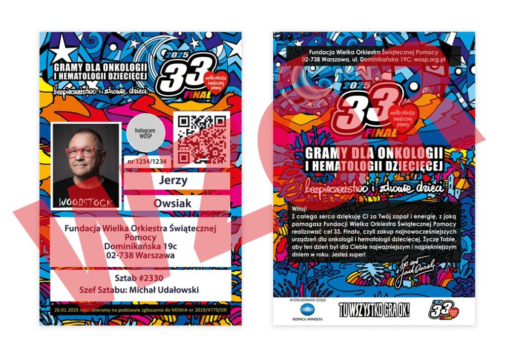 - Dodatkowo identyfikator musi mieć „serduszkowe” logo Fundacji Wielkiej Orkiestry Świątecznej Pomocy;