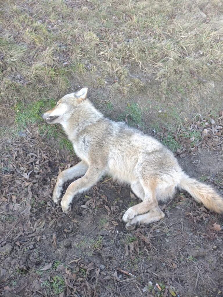 Martwy wilk przy drodze relacji Wiśniewko – Żurominek