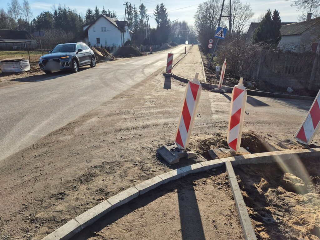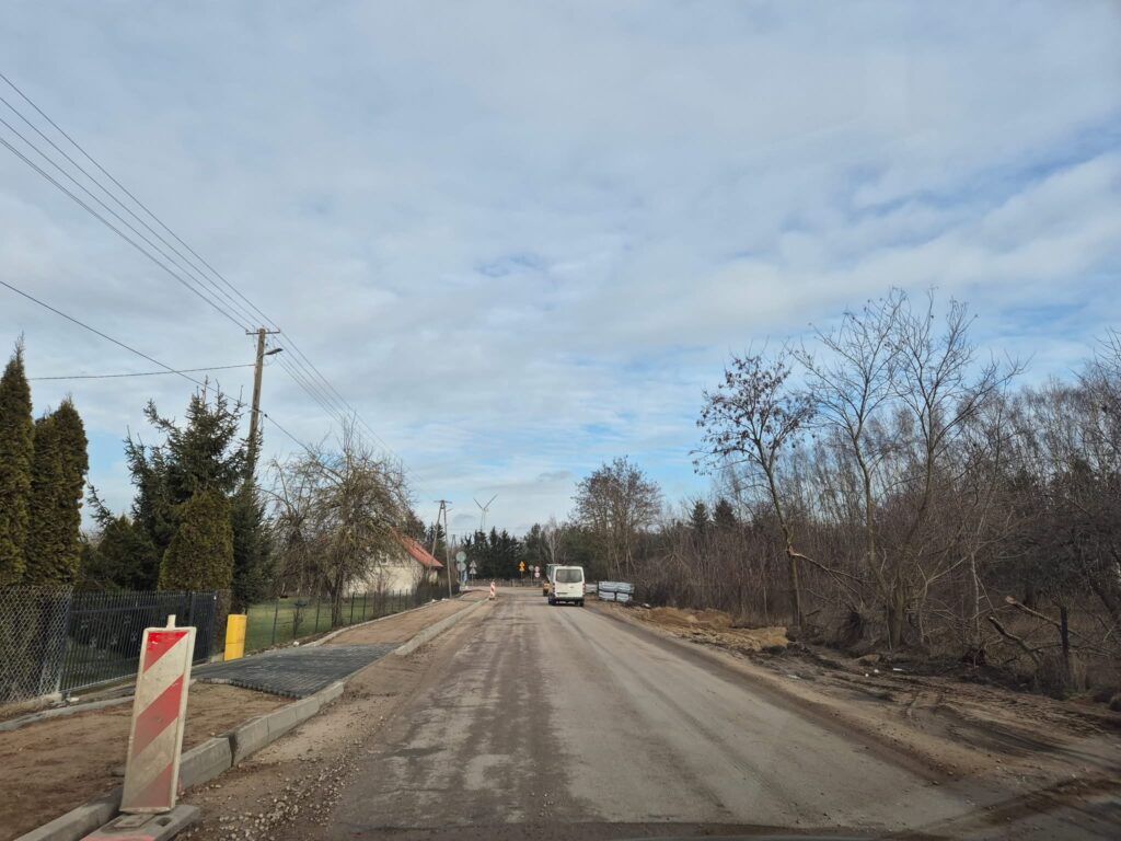 Na dzień dzisiejszy (18.02.2025 r.) wykonano odwodnienie drogi, zjazdy do posesji, ustawiono krawężniki oraz wykonano część nawierzchni chodnika.