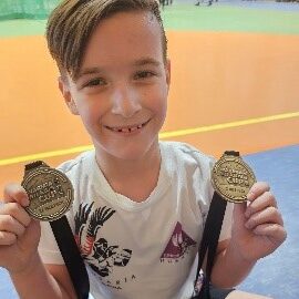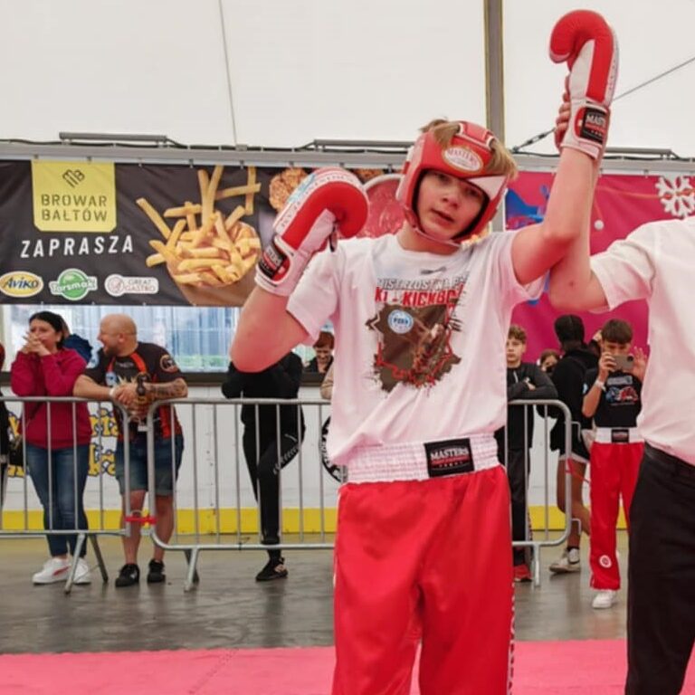 Gabriel jest członkiem kadry Polski w Kickboxingu – kick light 37 kg.