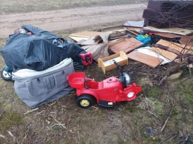 Zwracamy się także do osoby, która dopuściła się porzucenia tych przedmiotów, z prośbą o ich uprzątnięcie. Pragniemy przypomnieć, że odpady, w tym meble, wózki czy zabawki, nie powinny być składowane w miejscach publicznych, takich jak przydrożne rowy, lasy czy drogi.