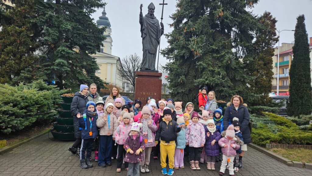 Na zakończenie dzieci zrobiły sobie pamiątkowe zdjęcie przy pomniku św. Wojciecha i odkryły miejsce, gdzie dawniej znajdowała się fontanna miejska oraz słynne „miejsce zakochanych” w Mławie.