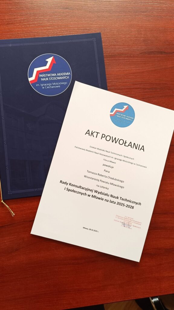 - Wicestarosta Tomasz Chodubski powołany w skład Rady Konsultacyjnej Wydziału Nauk Technicznych i Społecznych w Mławie