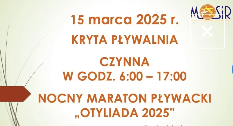 Po tej godzinie obiekt zostanie zamknięty dla klientów indywidualnych z powodu organizacji Nocnego Maratonu Pływackiego „Otyliada 2025”.