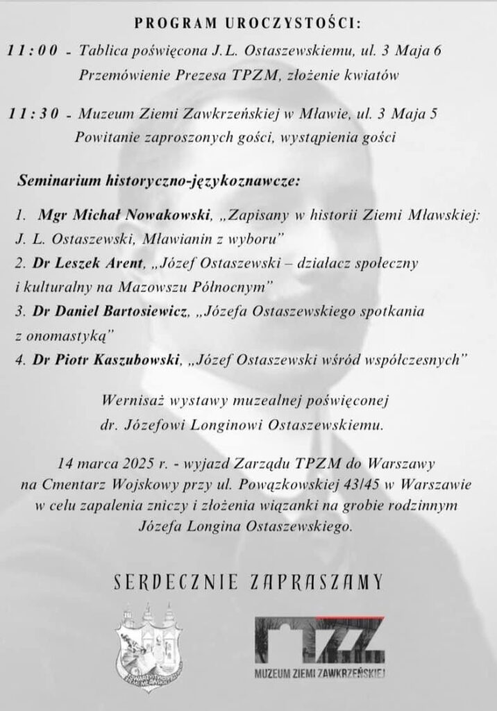 Przypominamy, ze już dziś, 15 marca, odbędzie się uroczysta inauguracja roku dr. Józefa Longina Ostaszewskiego z okazji 150 rocznicy urodzin.
